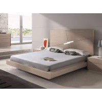 Short Description From our Sunnyside Bedroom set, this modern bed will become the unmatched centerpiece in the room. Its extra high headboard features a geometric pattern by joining together different walnut wood pieces. At the center, unique built in LED lights add visual interest. Plus, they also work as subtle lighting for reading in bed. Our Sunnyside premium bed has been made using the best solid woods and natural lacquers. Pick your favorite of two finishes: Light walnut brown with white accents and dark oak brown with light grey accents. This bed comes in both King and Queen size. Matching dresser, chest, mirror and nightstands are also available. Essentials about this piece: Expertly crafted using solid wood veneers and natural lacquers. LED spotlights. Some assembly required. Color scheme: Walnut Brown & White or Oak Brown & Light Grey. Dimensions: King - 45.3" H x 84" L x 79.5" D. Dimensions: Queen - 45.3" H x 84" L x 63.5" D. Other pieces in this set sold separately.