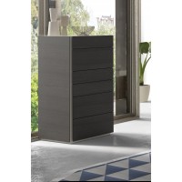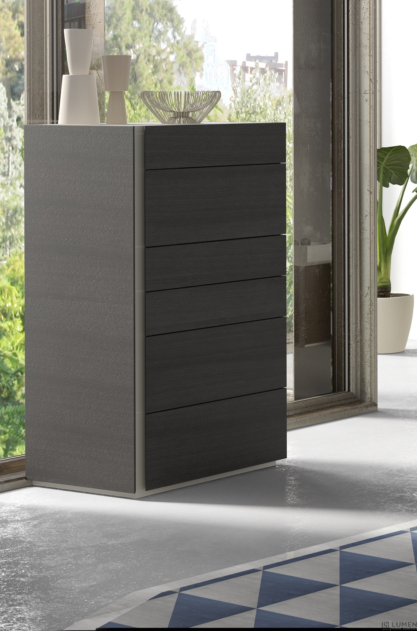 Short Description From our Sunnyside Bedroom set, this dresser was designed to meet all of your storage needs. It features four ample drawers each a different height, so you can better store everything from clothes and accessories to seasonal linens. The slim profile of this dresser works well even in smaller spaces. Our Sunnyside dresser has been expertly made using premium solid woods veneers and natural lacquers. Pick your color! The Sunnyside Set comes in two finishes: Light walnut brown with white accents and dark oak brown with light grey accents. Matching bed, chest, mirror and nightstands are also available. Essentials about this piece: Expertly crafted using solid wood veneers and natural lacquers. Stainless steel hardware. Premium soft closing tracks. Some assembly required. Color scheme: Walnut Brown & White or Oak Brown & Light Grey. Dimensions: 28.3" H x 47.2" L x 17.7" D. Other pieces in this set sold separately.