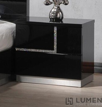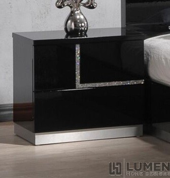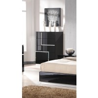 Short Description From our Frick Bedroom set, this is one chest which will never go unnoticed. It offers ample storage with five large drawers, roomy enough to accommodate clothes, linens and even toys. The true star of this piece are the contrasting crystal lines running throughout, adding shine and drama to a normally utilitarian piece. As with the rest of our Frick Bedroom set, this chest was handcrafted using premium solid woods and natural lacquers. Matching bed, dresser and nightstands are also available. Essentials about this piece: Expertly crafted using solid wood veneers and natural lacquers. Premium soft closing tracks. No assembly required. Color scheme: Black, high gloss. Dimensions: 45" H x 19" L x 30" D. Other pieces in this set sold separately.