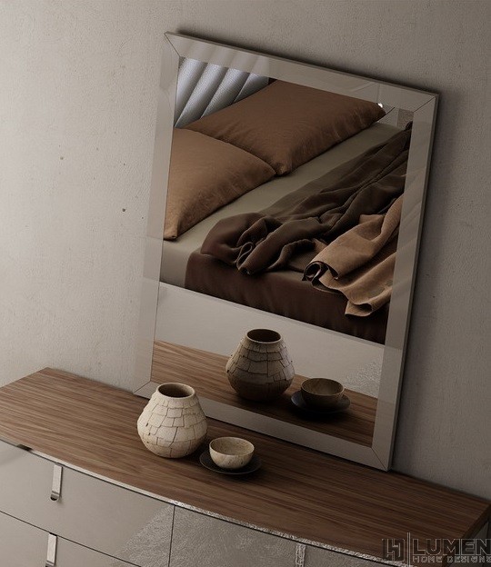 From our Washington Bedroom set, this modern dresser features six roomy drawers to discreetly house clothes and other personal belongings. Its traditional design lines are treated to a contemporary finish pairing high gloss, stainless steel and wood. The large surface area of the tabletop can comfortably house other decor items from toiletries to large mirrors (as pictured). This dresser has been constructed using premium wood veneers and high gloss lacquers. Pick your color: this dresser comes in Grey or Grey with a Walnut Wood top. Matching bed, chest, mirror and nightstands are also available. Essentials about this piece: Expertly crafted using solid wood veneers and natural lacquers. Stainless steel hardware. Premium soft closing tracks. No assembly required. Color scheme: Walnut and Grey, or Grey. Dimensions: 30" H x 66" L x 20" D. Other pieces in this set sold separately.
