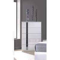 From our Broome Bedroom set, this chest elegantly blends the classic shape of a chest and drawers with modern materials and finishes. Its offers enough room to discreetly store all of your clothes and linens. A chrome and mirrored accent running down the front adds visual interest to this piece. As with the rest of our Broome Set, this chest was crafted using premium solid wood veneers and natural lacquers. Matching bed, dresser and nightstands are also available. Essentials about this piece: Expertly crafted using solid wood veneers and natural lacquers. Premium soft closing tracks. No assembly required. Color scheme: White lacquer and Chrome. Dimensions: 46" H x 19.5" L x 30" D. Other pieces in this set sold separately.