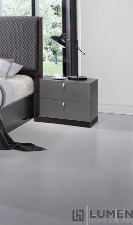 Short Description From our Parsons Bedroom set, our bed takes after mid-century modern design for a timeless look. The wooden headboard comes with plush diamond shaped tufting with extra padding for comfort while sitting in bed. The frame features solid wood construction for durability. Our Parsons bed was crafted using premium solid woods and fabrics. The fabrics can be easily spot cleaned at home in case of stains. Take your pick: it comes in both King and Queen size. Matching dresser, chest and nightstands are also available. Essentials about this piece: Expertly crafted using solid wood veneers and premium fabrics. Some assembly required. Color scheme: Grey and Brown Wood. Dimensions: King - 41.3" H x 75.9" L x 7.9" D. Dimensions: Queen - 41.3" H x 60.2" L x 79.9" D. Other pieces in this set sold separately.