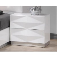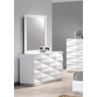 Short Description From our Carnegie Bedroom set, this glossy dresser features unique shapes and finishes. Subtle geometric molding covers its whole front for a sophisticated and modern look. Ample drawers will help you keep all of your bedroom essentials discreetly organized. As with the rest of our Carnegie Set, this dresser was crafted using premium solid woods veneers and natural lacquers. Matching bed, chest and nightstands are also available. Essentials about this piece: Expertly crafted using solid wood veneers and natural lacquers. Premium soft closing tracks. Some assembly required. Color scheme: White, high gloss. Dimensions: 31" H x 18" L x 55" D. Other pieces in this set sold separately.