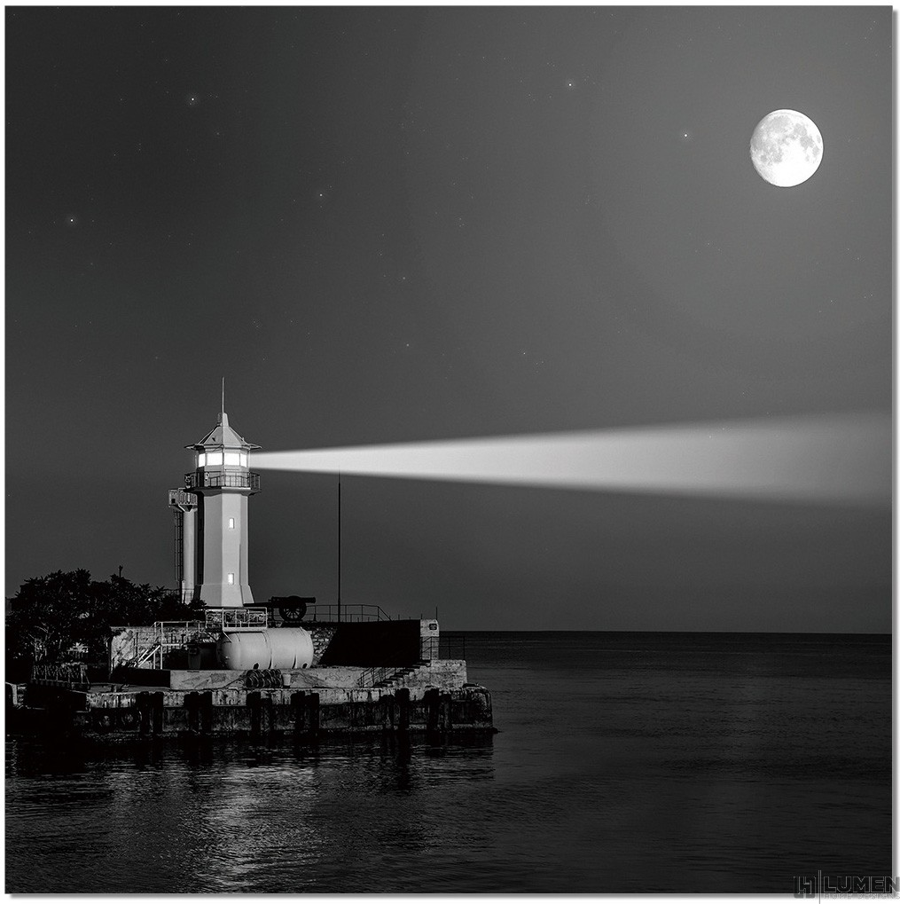 Short Description This peaceful art piece features the two main guardians of the seas: Lighthouses and The Moon. For centuries, their guiding light has helped sailors find their way home in the dead of night. Anchor your favorite room with this print’s shades of black and white, and with it bring more serenity, zen and inspiration into your surroundings. This single panel wall print will look best in spaces meant for relaxation or in need of a calming touch, such as family rooms or conference rooms. Essentials about this piece: • Expertly made using state of the art printing onto acrylic. • Unframed, ready to hang. • Color scheme: Black and white. • Dimensions: One piece, 47” H x 47” W.
