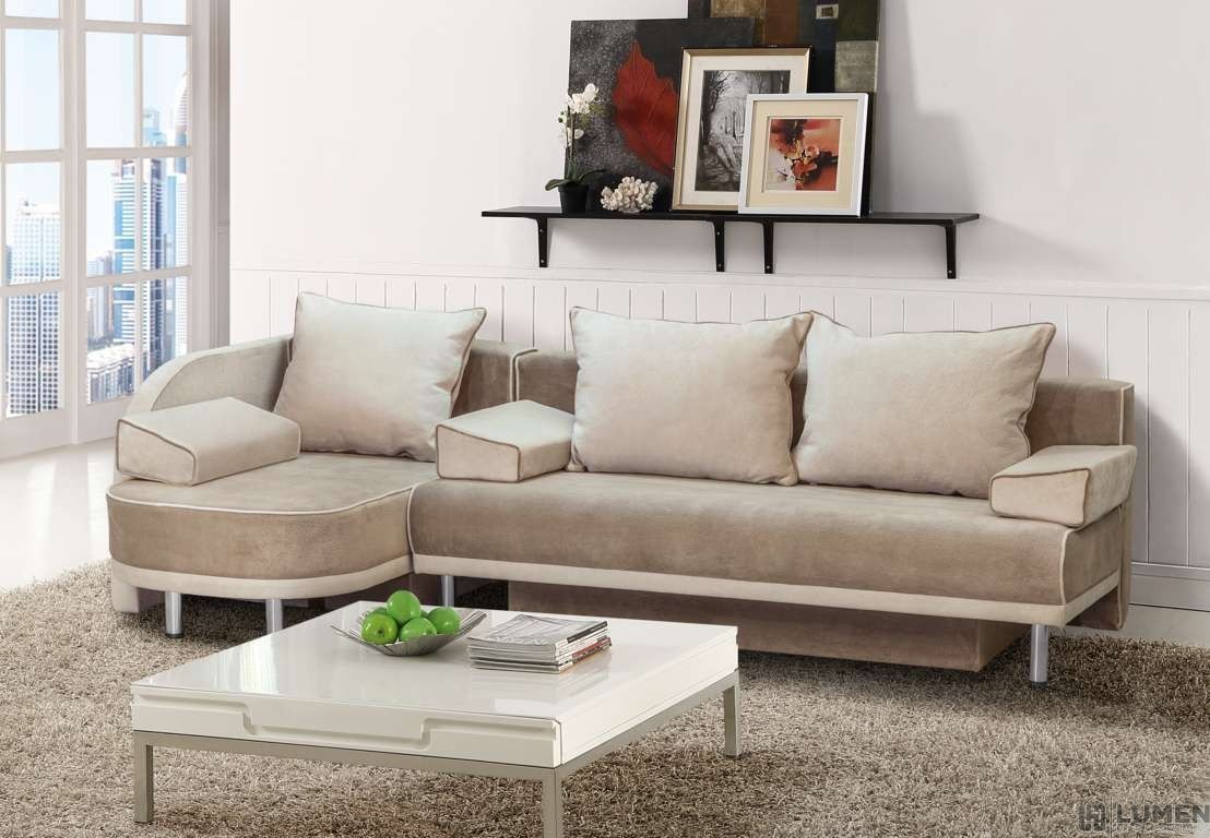 Short Description Bali is for those who want to arrange their seating with their particular mood for that day. Bali can be used as a sofa, sectional or chaise. The Sofa becomes a sofa bed. All pieces are made in Easter Europe and feature an ultra-soft touch, dark beige and light brown fabric with outlining piping and resting upon chrome stainless steel legs.Microfiber, Chromed Steel Legs