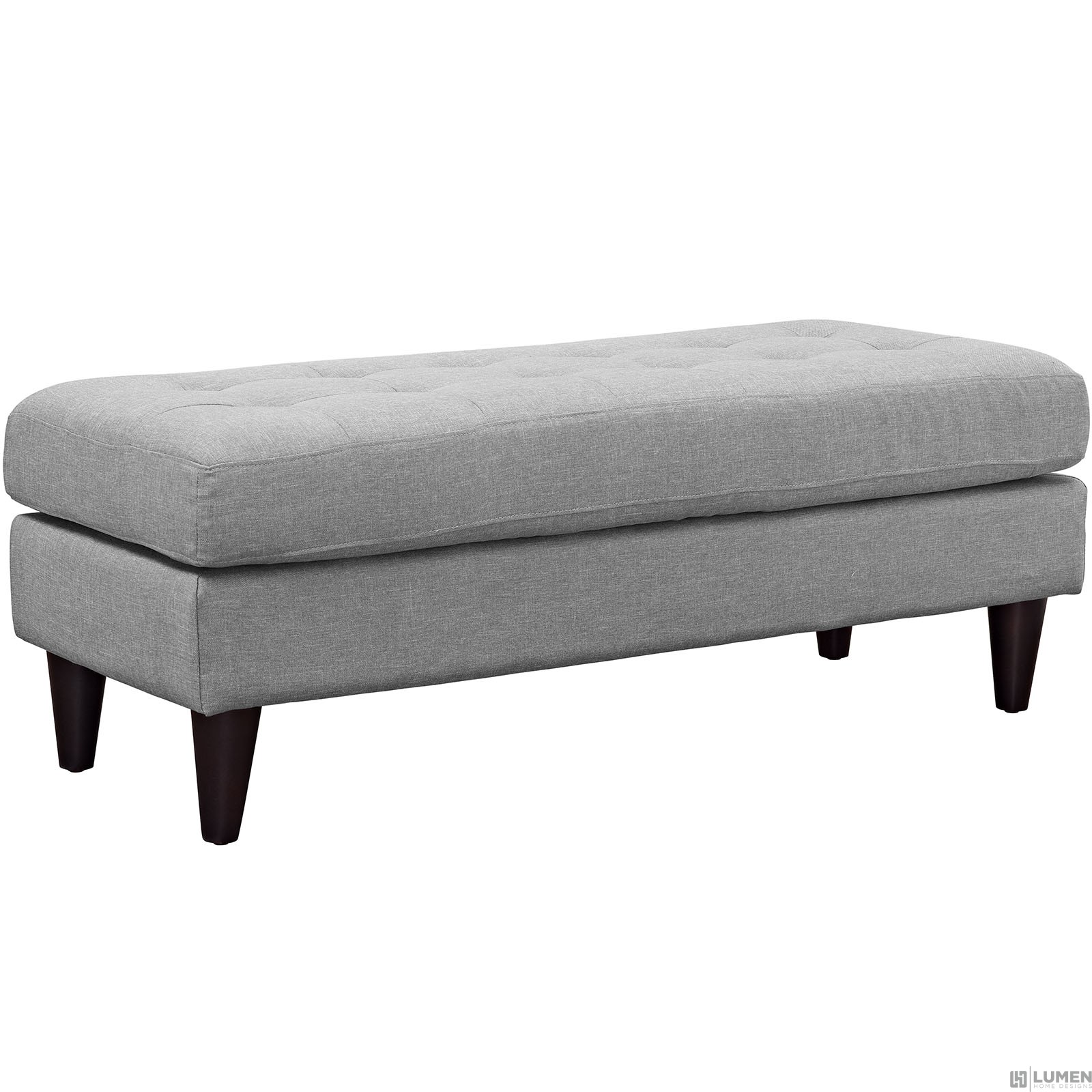 Short Description Mid-Century Modern Style Bench Deeply Tufted Buttons Black Stained Rubberwood Legs Non-Marking Foot Caps 100% Polyester Material Assembly Required Dense Foam Padding