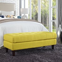 Short Description Mid-Century Modern Style Bench Deeply Tufted Buttons Black Stained Rubberwood Legs Non-Marking Foot Caps 100% Polyester Material Assembly Required Dense Foam Padding