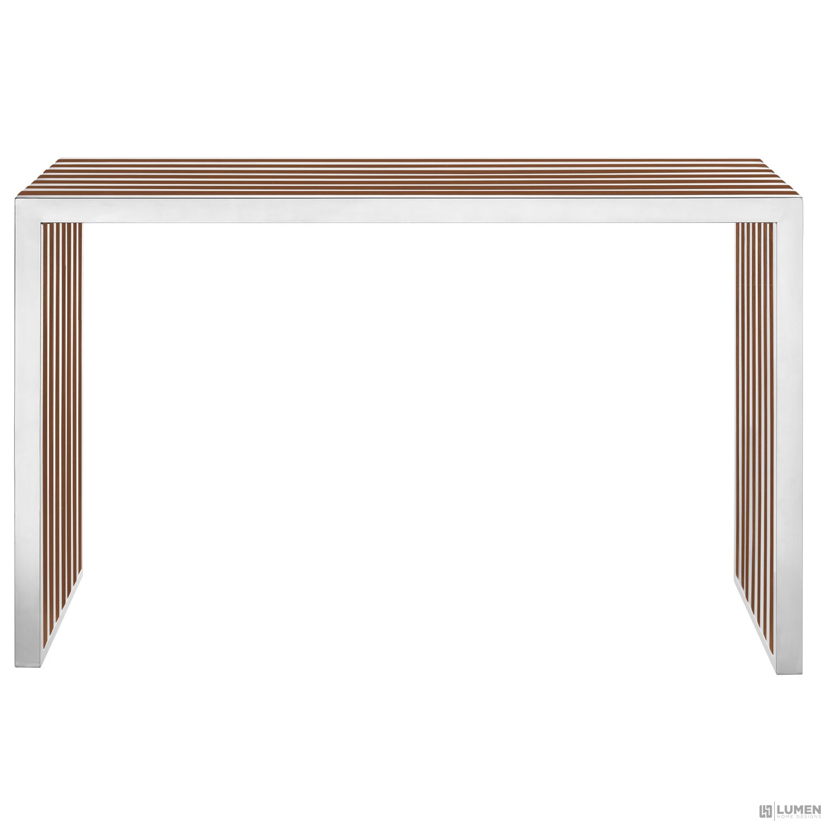 Short Description Perfect Modern Bench or Table Stainless Steel Construction Mahogany varnish poplar wood slats Easy to Clean Comes Fully Assembled