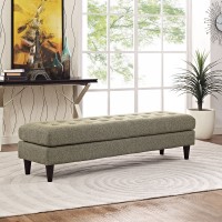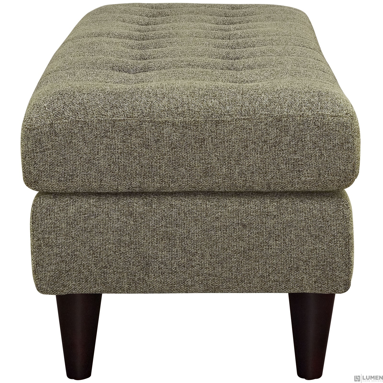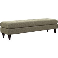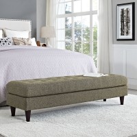 Short Description Mid-Century Modern Style Bench Deeply Tufted Buttons Black Stained Rubberwood Legs Non-Marking Foot Caps 100% Polyester Material Dense Foam Padding Assembly Required
