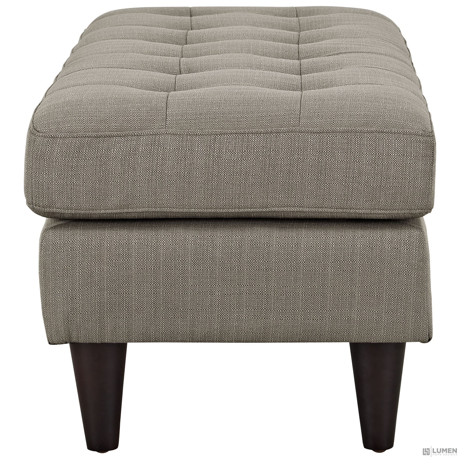 Short Description Mid-Century Modern Style Bench Deeply Tufted Buttons Black Stained Rubberwood Legs Non-Marking Foot Caps 100% Polyester Material Assembly Required Dense Foam Padding