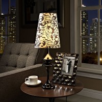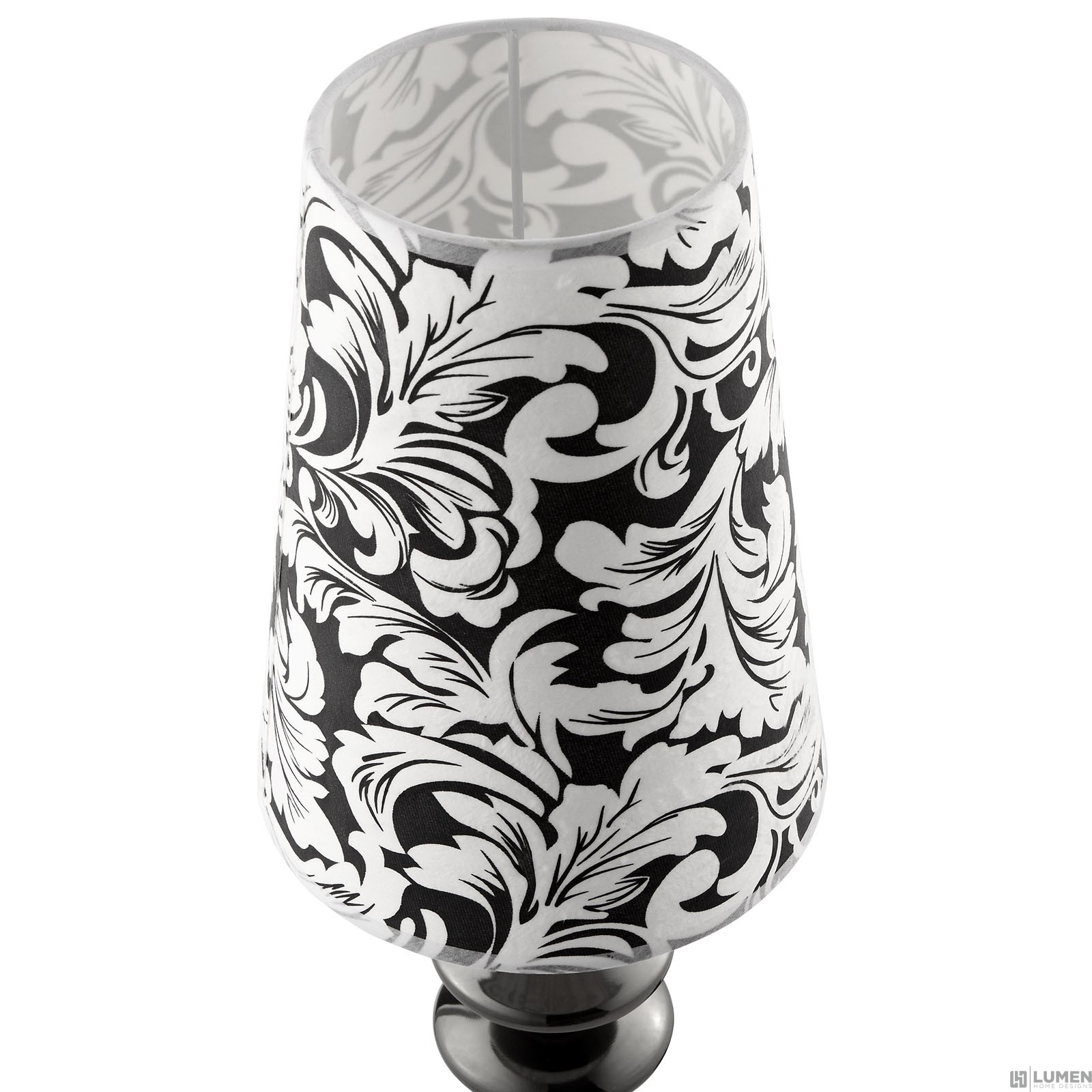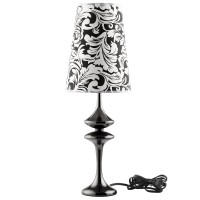 Short Description Modern and elegant table lamp Black and white damask patterned shade Takes 1 60 Watt Standard Light Bulb(Not Included)) Pearl coating UL Listed and Approved