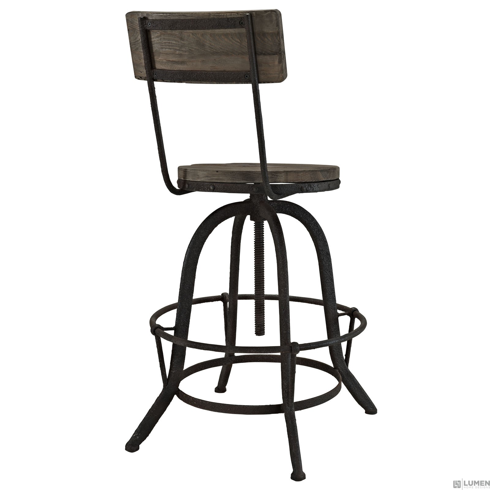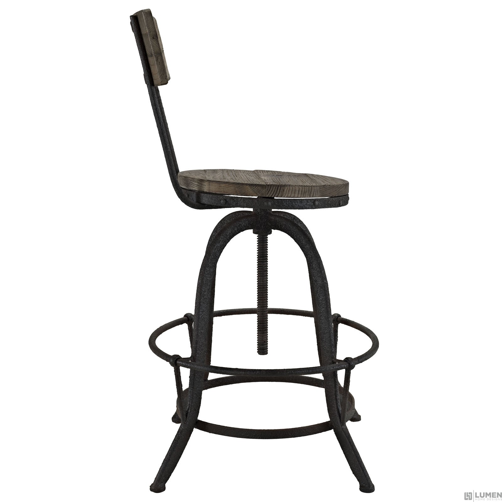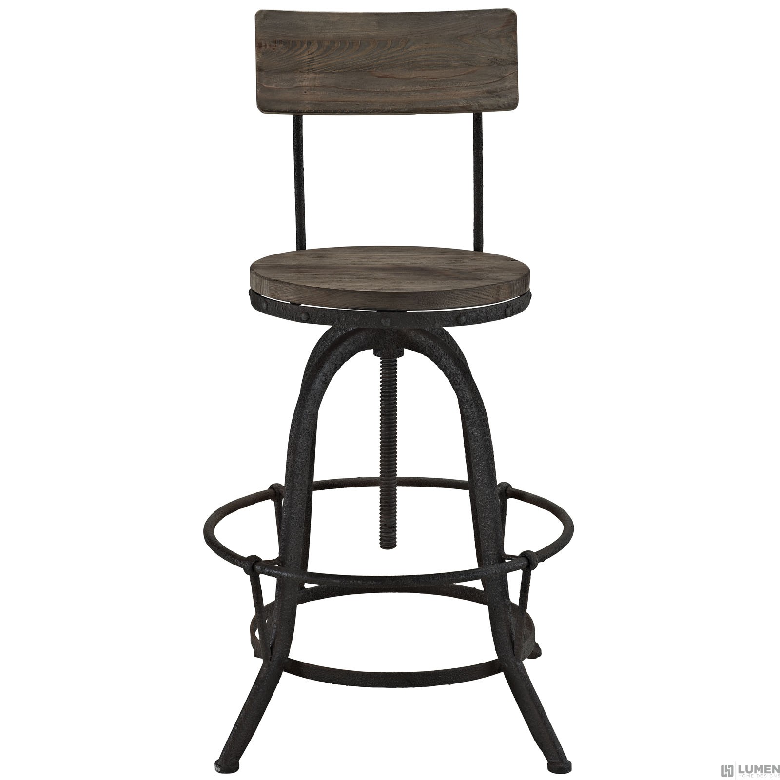 Short Description Industrial modern bar stool Bar and Counter Height Pine wood seat and back (stained but not sealed) Tapered metal legs Foot ring Chair weight capacity 330 lbs.