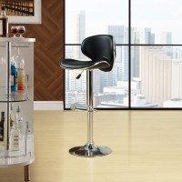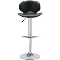 Short Description Fits most bars and countertops Funky 1950s retro look Padded vinyl wave seat & back Height adjustable hydraulic lift Polished chrome-finished base Tubular footrest for support Easy wipe clean surface