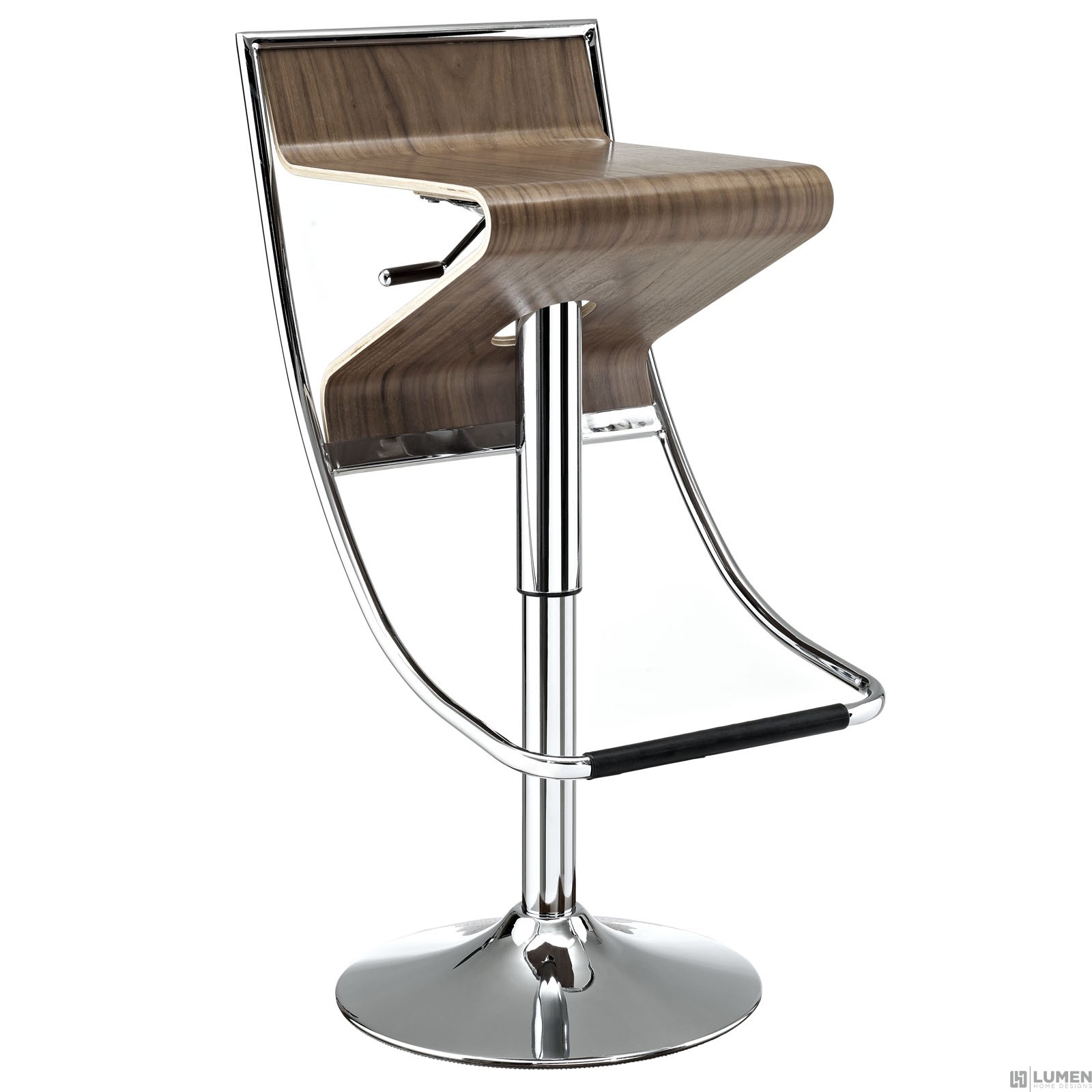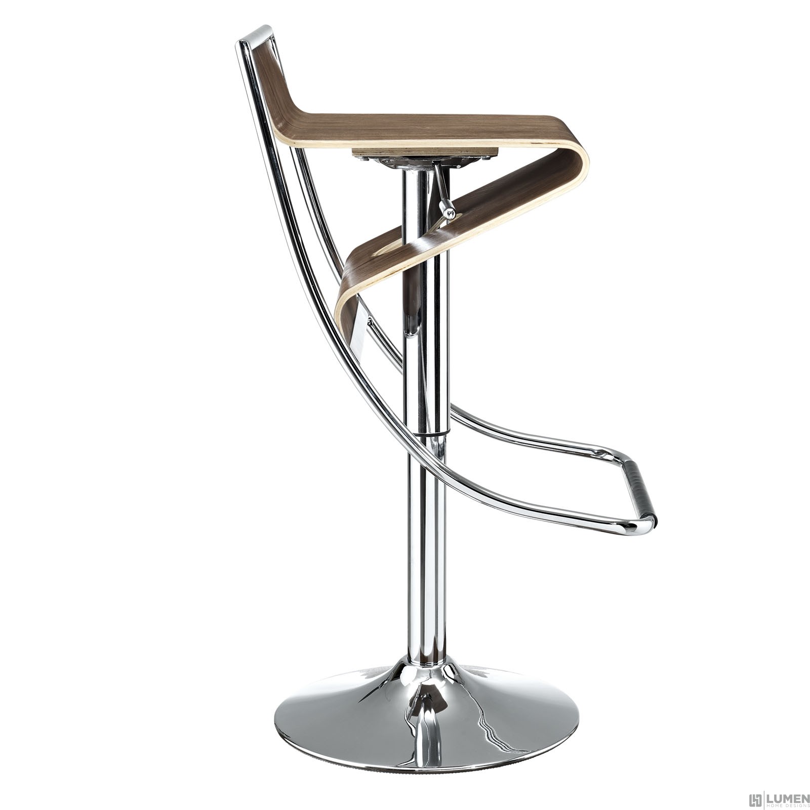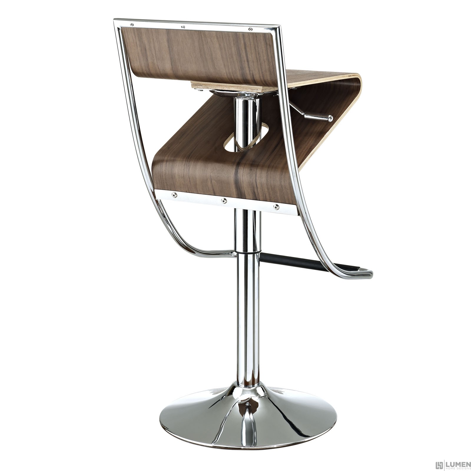 Short Description Suitable for either home or commercial use Modern and contemporary design Fits most bars and countertops Chromed Steel Frame and Bas Plywood Seat with Attractive Wood Veneer Hydraulic Adjustable Height 360 Degree Swivel with footrest