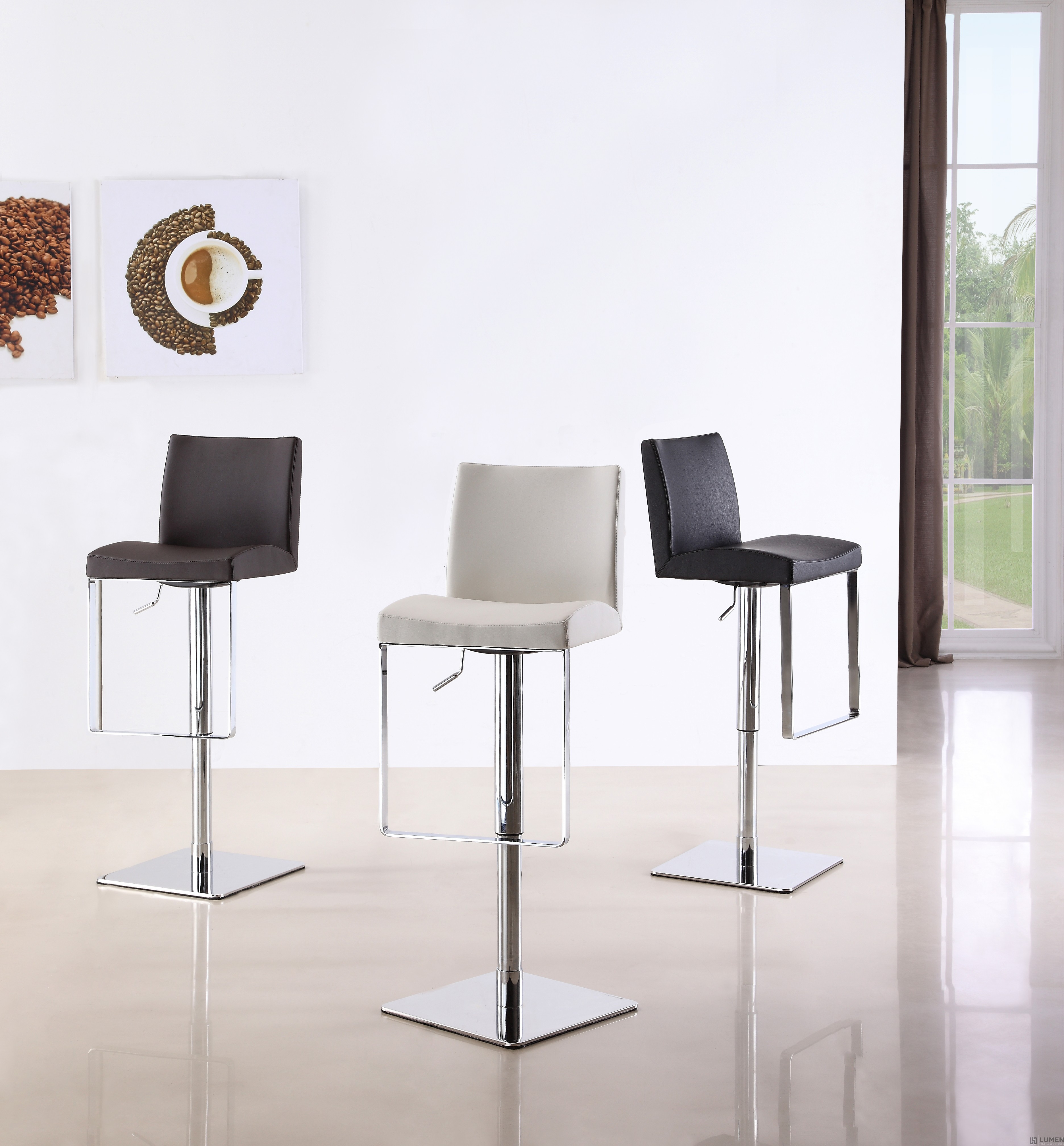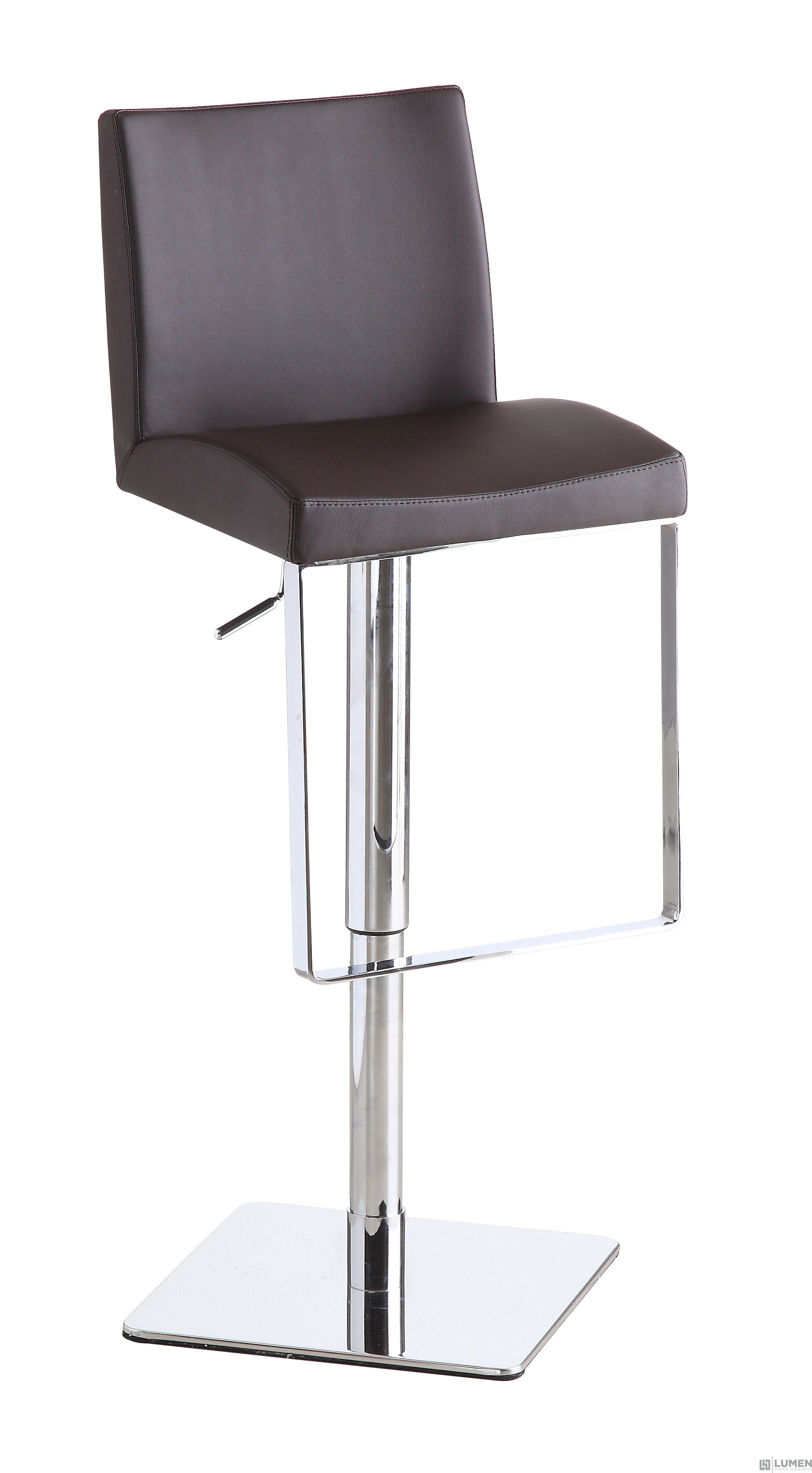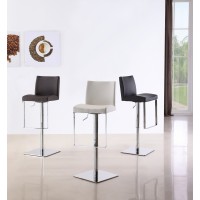 Short Description You’re invited to relax on our modern bar stools, featuring a full back and slightly curved seat for added comfort. Made using a high tech foam injection technique, the bar stool seat reduces lower back pressure for when you need to use it as extra setting for entertaining. Meant for heavy duty use, all materials are waterproof, bacteria resistant and easy to clean. Strong stainless steel legs and a footrest with chrome plating finish off this modern piece. This understated bar stool will fit right in contemporary and modern spaces, whether for a kitchen home, bar, or for commercial use. Mix and match: it's available in black, brown or white. Essentials about this piece: • Expertly made seat using state of the art foam injection molding. Waterproof. • Stainless steel base. • Pneumatic height adjustment, swivels. • Assembly not required. • Color scheme: Brown, Black or White. • Dimensions: 15.5” W x 15.5” D x 22.5-32.5” H