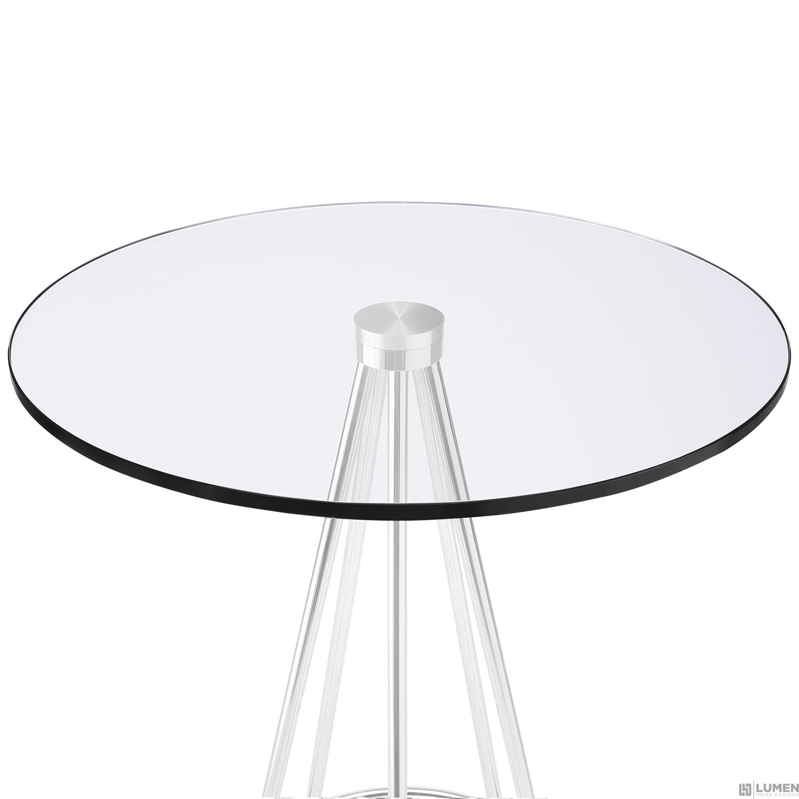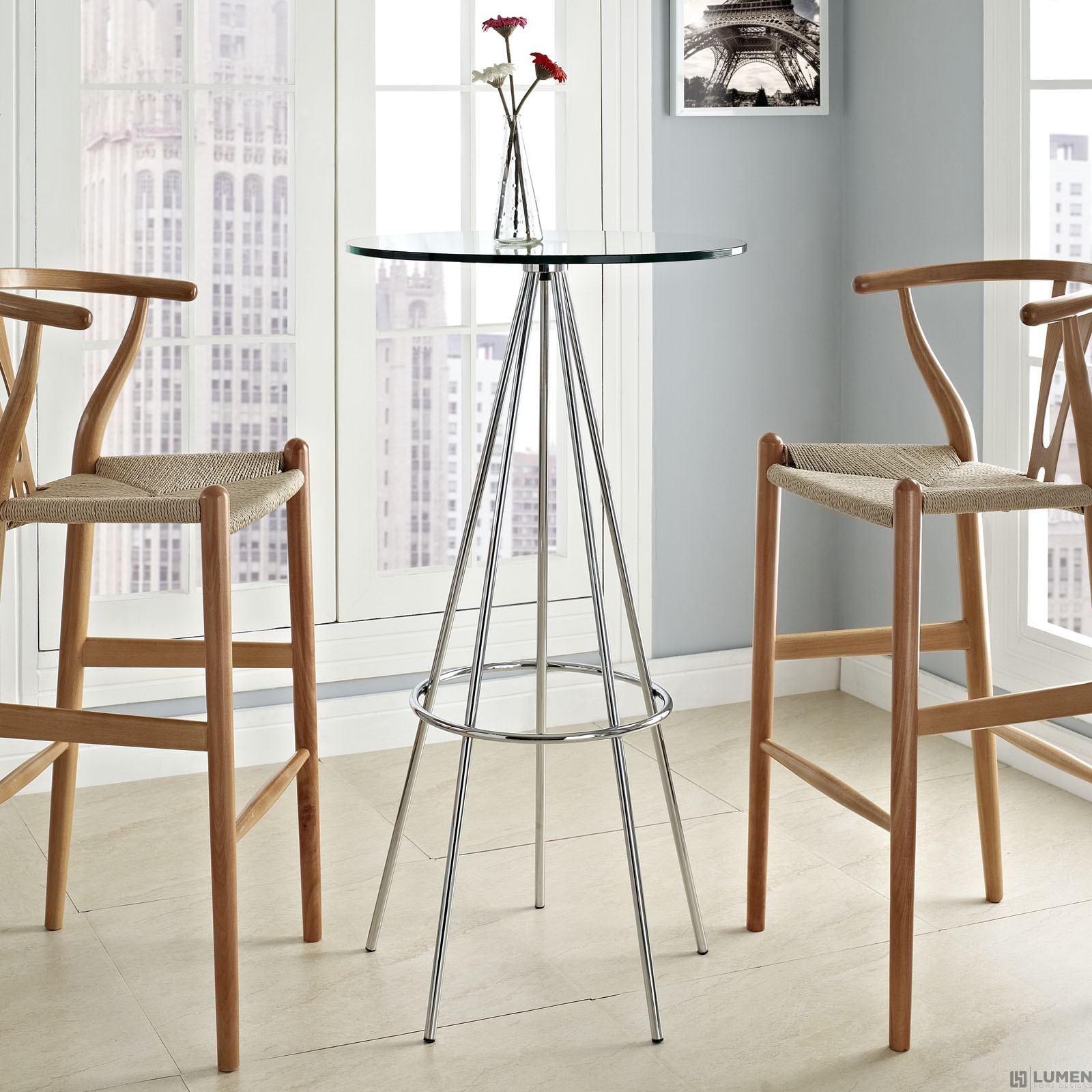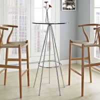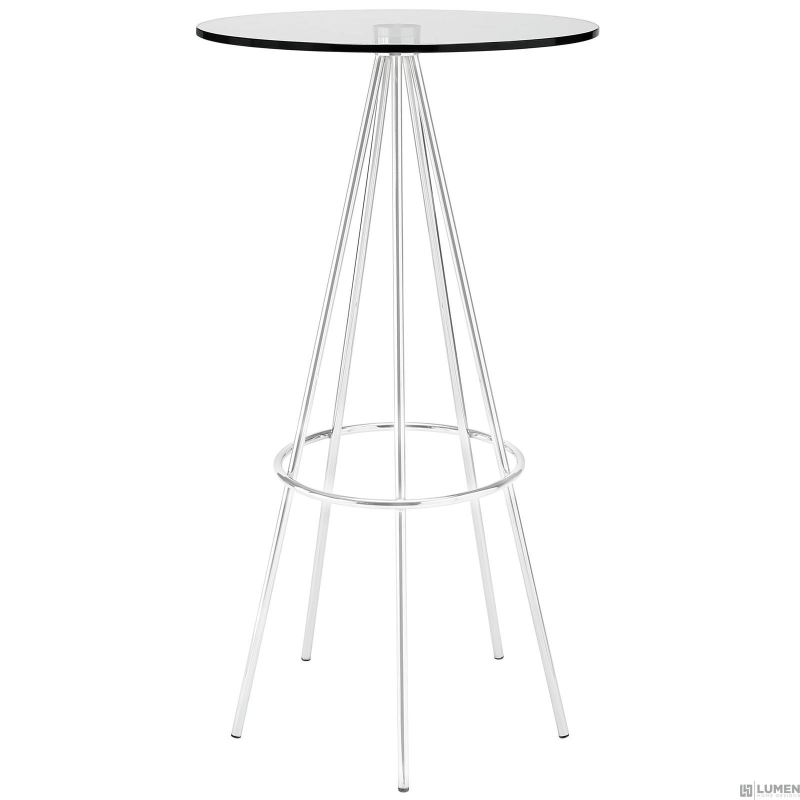Short Description Modern bar table Chrome plated steel legs Tempered glass top