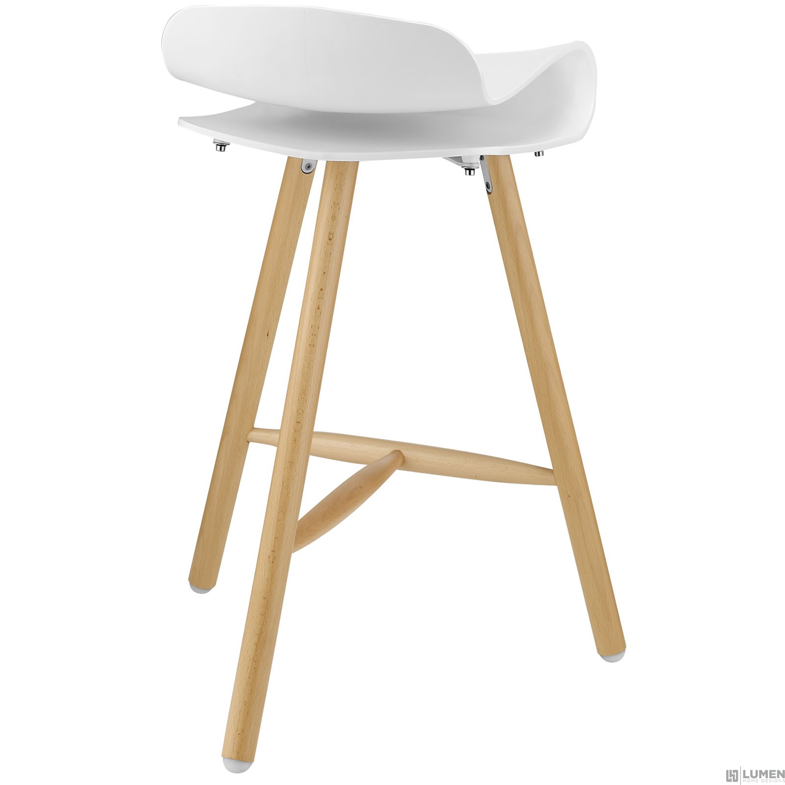 Modern bar stool PBT coated steel seat Wooden legs and footrest Easy clean surface Non-marking foot caps Weight Capacity 330 lbs.