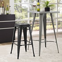 Modern Bar Stool Power Coated Steel Distressed Finish No Assembly Required Non-Marking Feet Caps Stool Weight Capacity: 331 lbs.