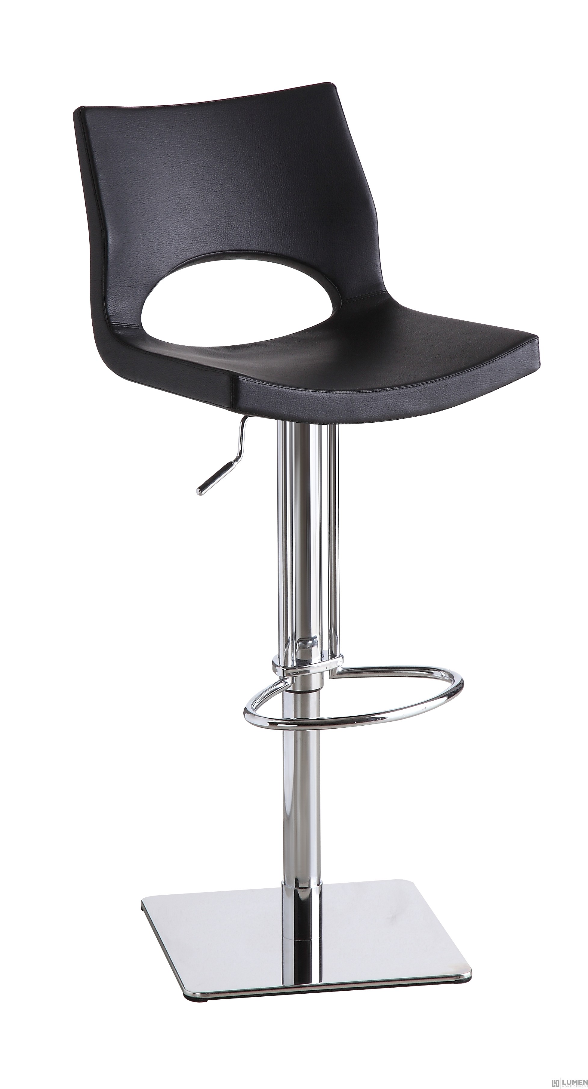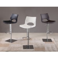 Short Description If you’re looking for a retro modern seating option to compliment your home or business, this edgy bar stool is for you! Done in leather with chrome plating, it is versatile and heavy traffic proof. As with all of our other foam based bar stools, this high chair is waterproof, bacteria resistant and chemical resistant. Its seat swivels to 360 degrees and features a hydraulic height adjustment mechanism. This funky bar stool will be the right accent for any contemporary or modern space, whether for a kitchen home, bar or for commercial use. Mix and match: it's available in black, brown or white leather. Essentials about this piece: • Foam injected seat cushion. • Stainless steel base. • Pneumatic height adjustment, swivels. • Assembly not required. • Color scheme: Black, Brown or White. • Dimensions: 17.5” W x 15.5” D x 23-33” H