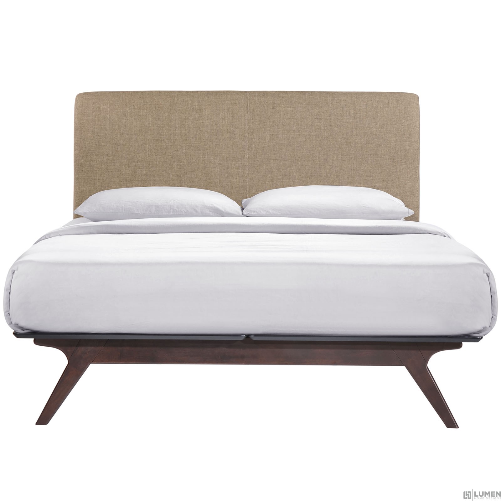 Short Description Mid-century modern style Full size platform bed MDF and rubberwood construction Does not include mattress Box spring not required Spot clean only Assembly required for Bed Only Polyester Upholstery