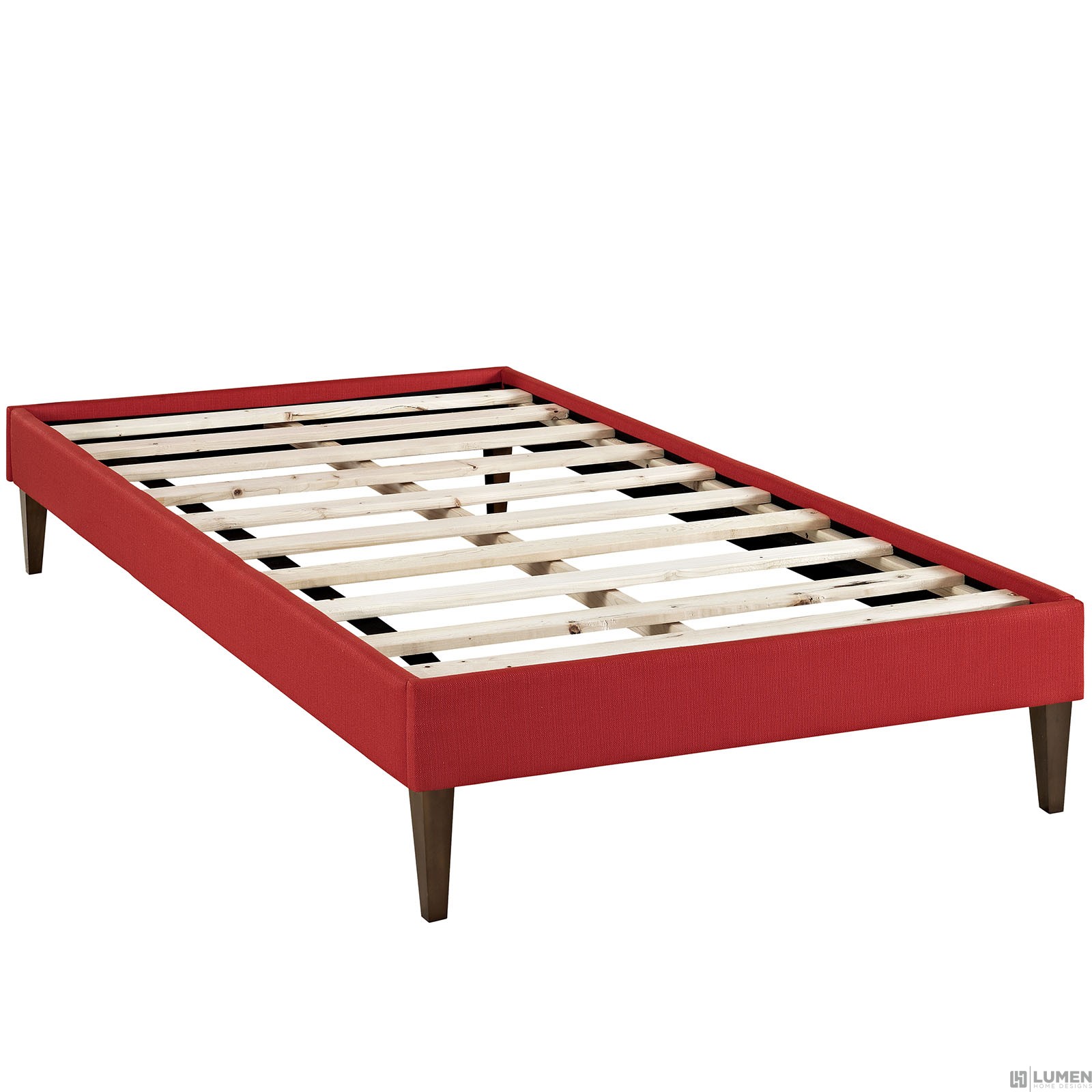 Short Description Solid Wood Frame Upholstered in Ten Wood Support Slats Polyester Center Rail with Support Two Legs Non-Marking Foot Glides Mattress not Included Assembly Required