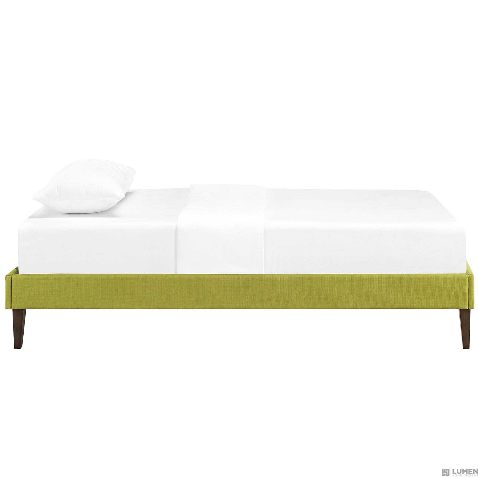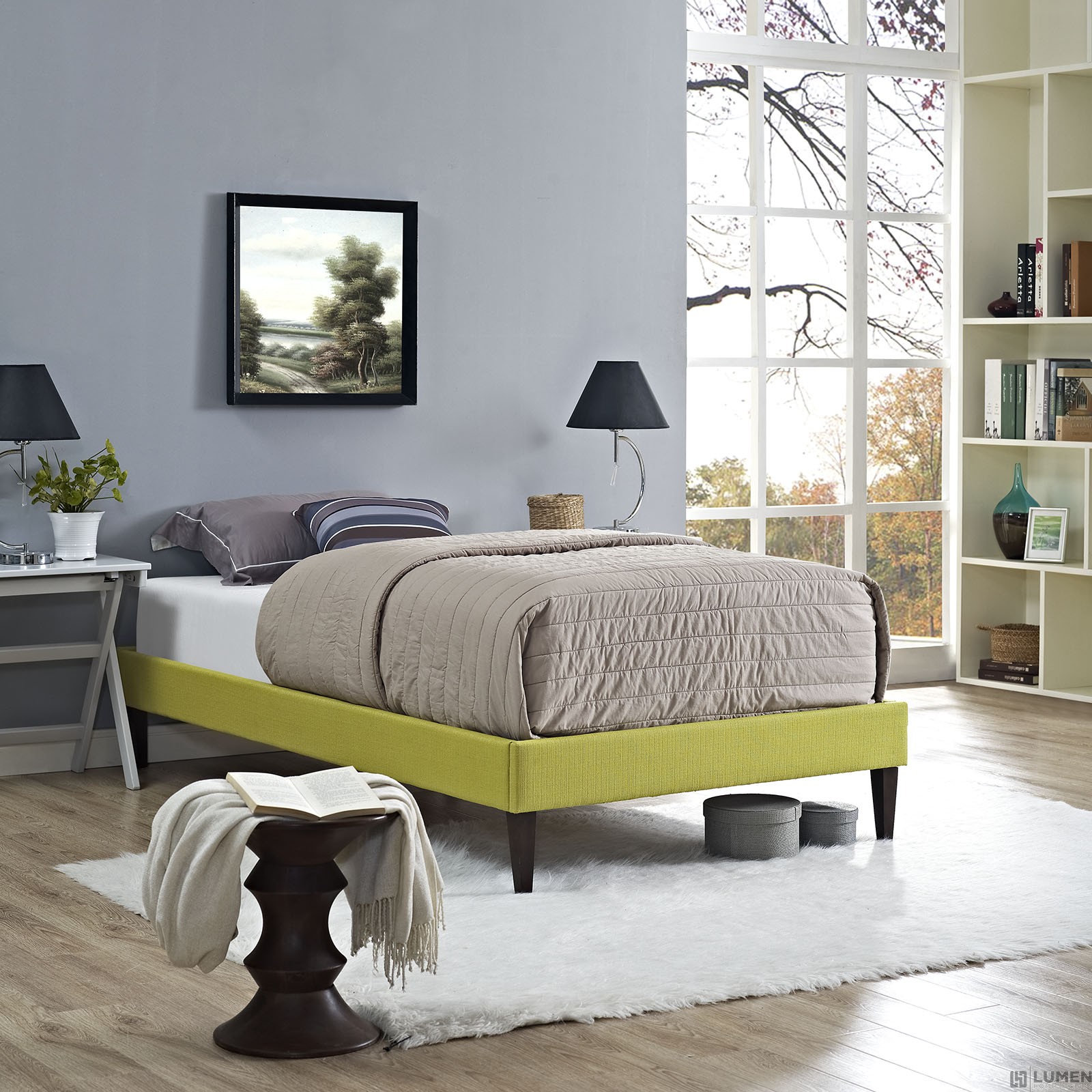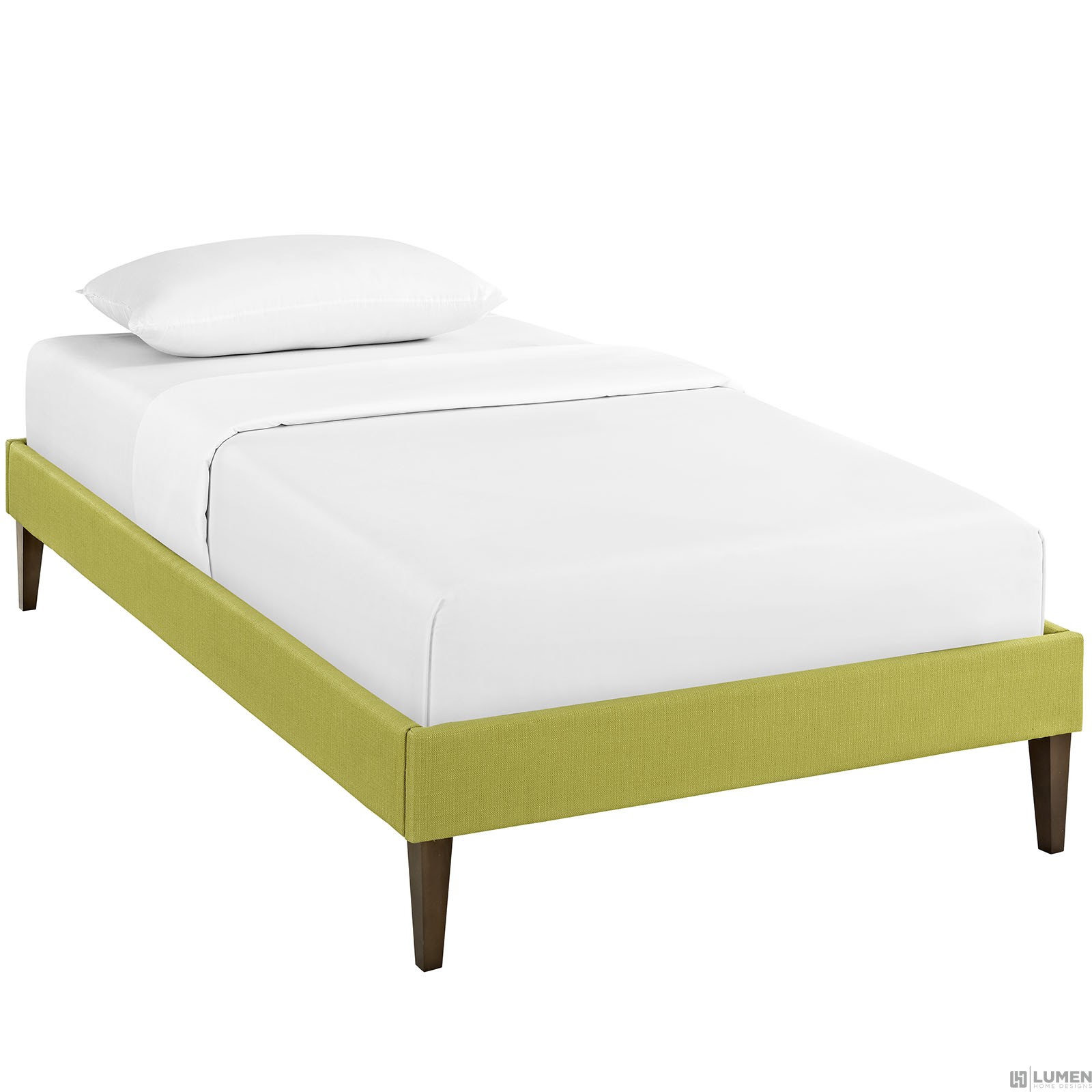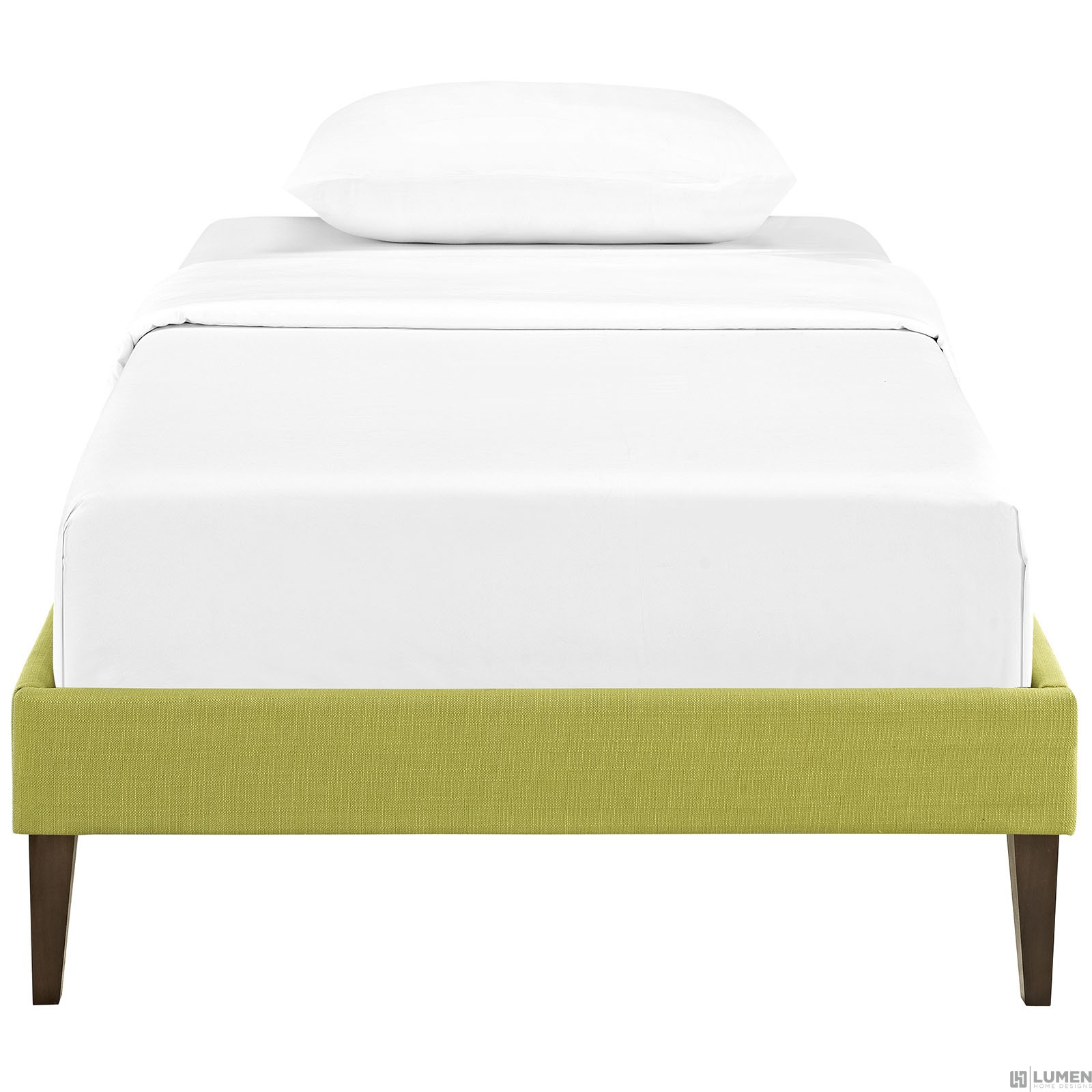 Short Description Solid Wood Frame Upholstered in Ten Wood Support Slats Polyester Center Rail with Support Two Legs Non-Marking Foot Glides Mattress not Included Assembly Required