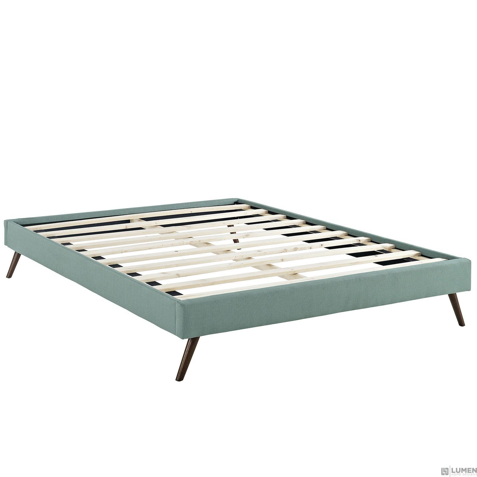 Solid Wood Frame Upholstered in Polyester Ten Wood Support Slats Center Rail with Support Two Legs Non-Marking Foot Glides Mattress Not Included Assembly Required
