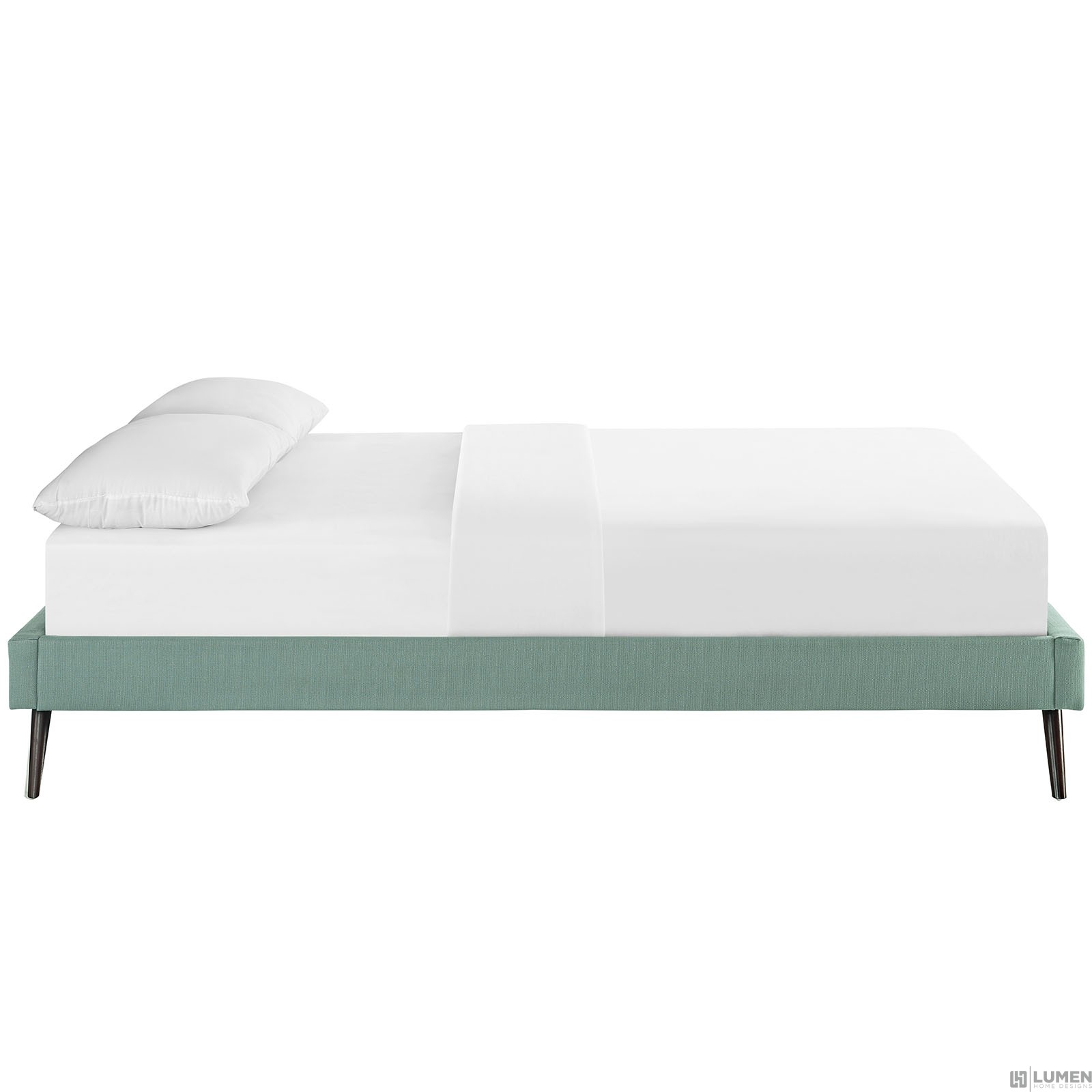 Short Description Solid Wood Frame Upholstered in Polyester Ten Wood Support Slats Center Rail with Support Two Legs Non-Marking Foot Glides Mattress Not Included Assembly Required