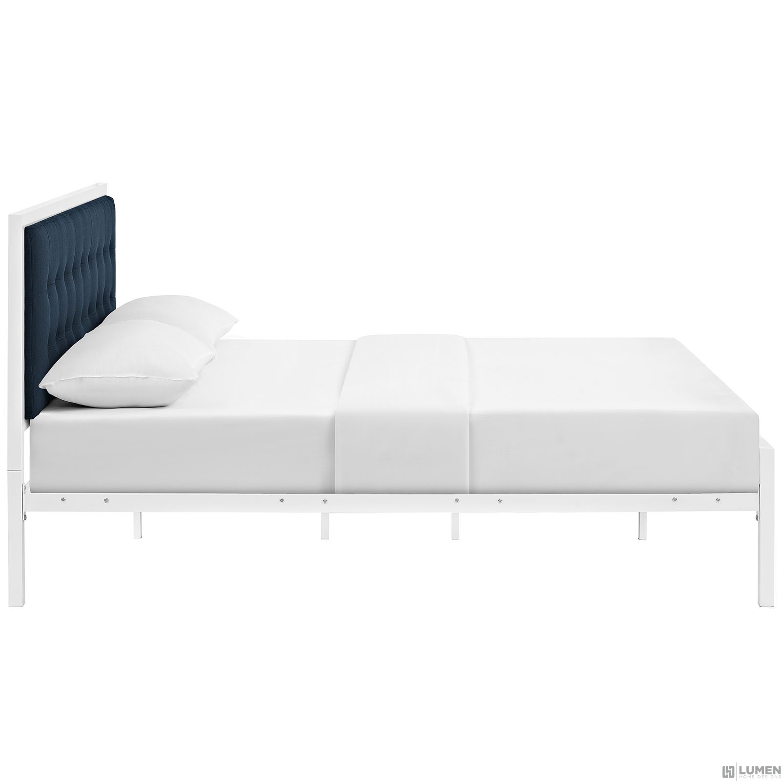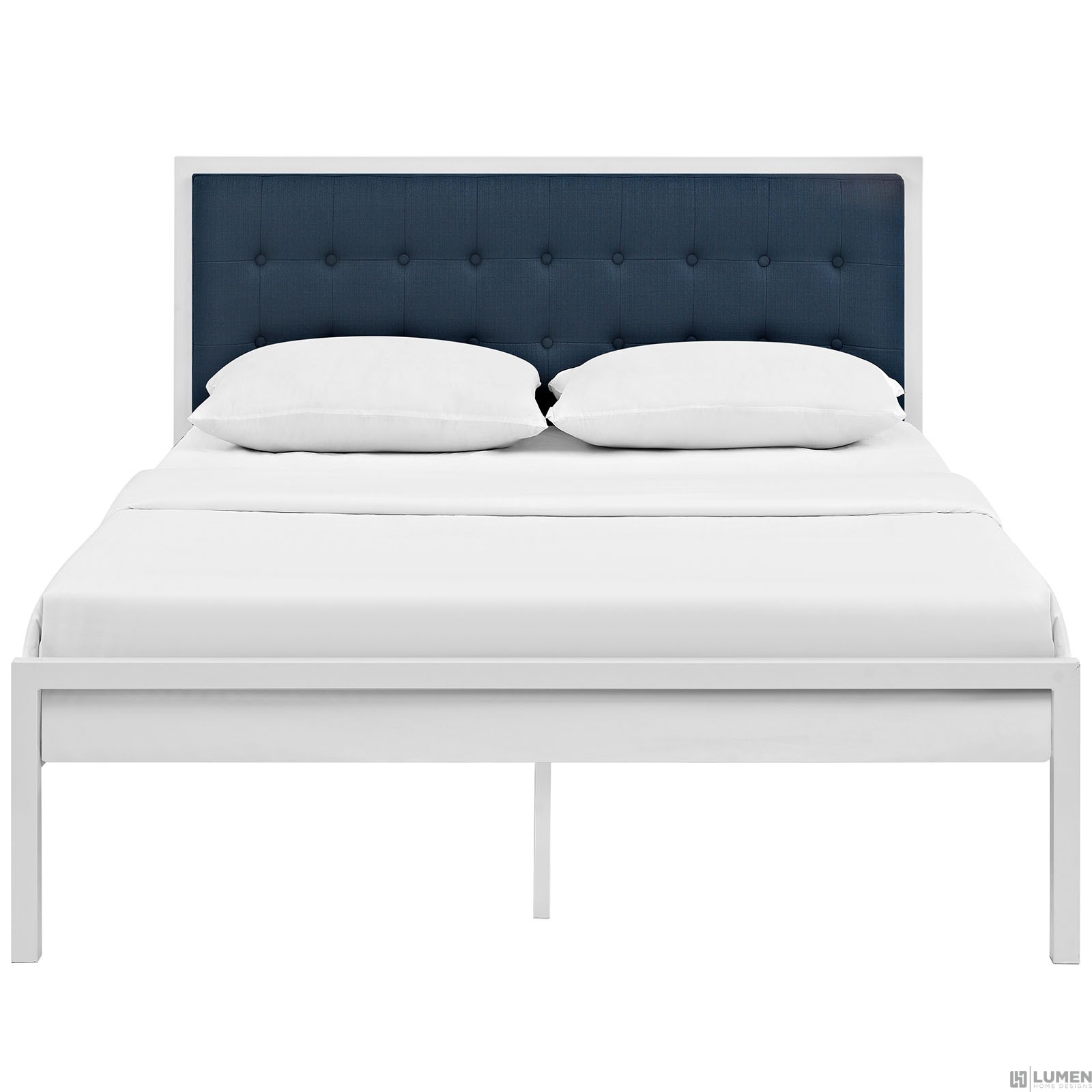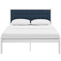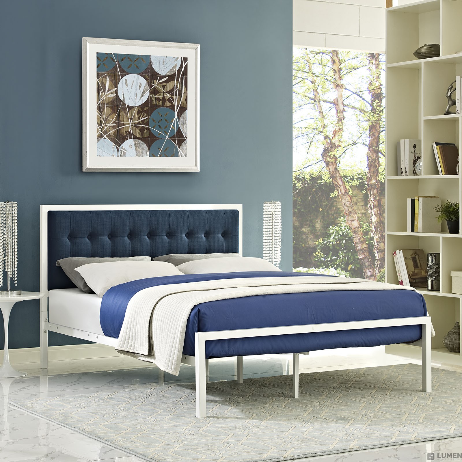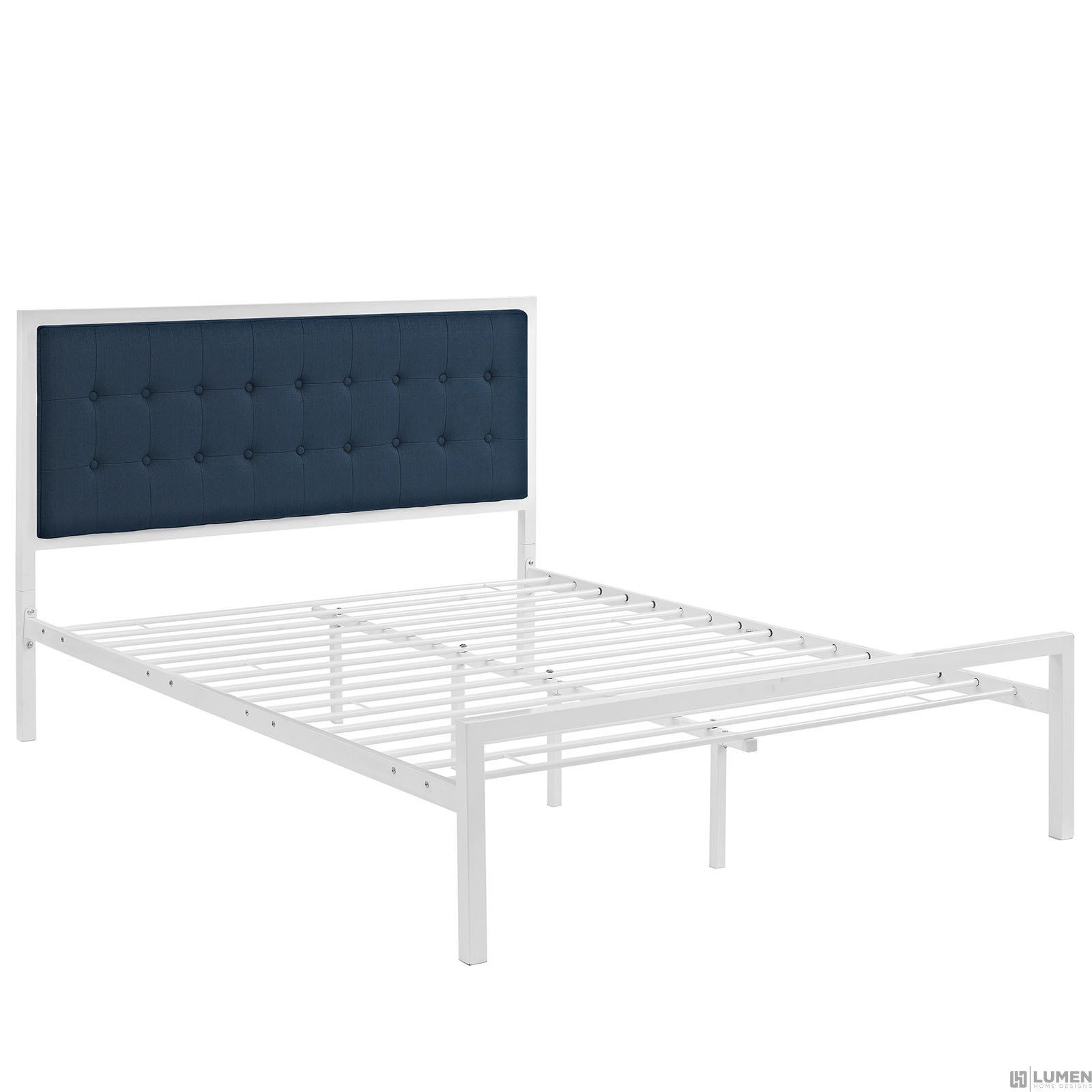 Short Description Platform Bed Frame With Headboard Sturdy Powder Coated Steel Frame Steel Rod Mattress Support System Tufted Button Polyester Headboard Weight Capacity Up To 1300 lbs Non-Marking Foot Caps Assembly Required