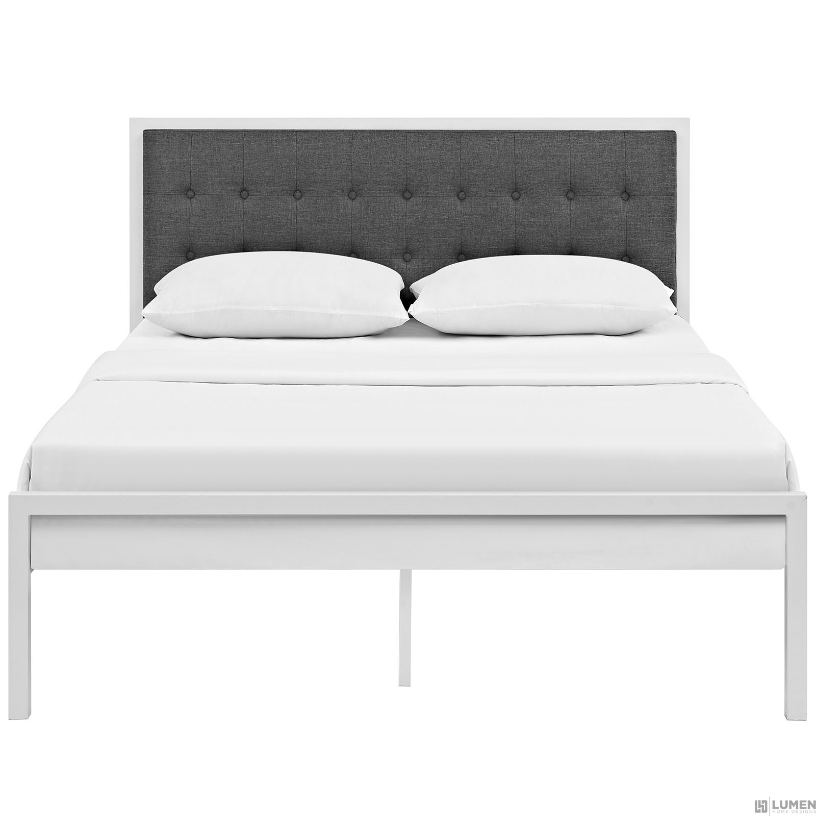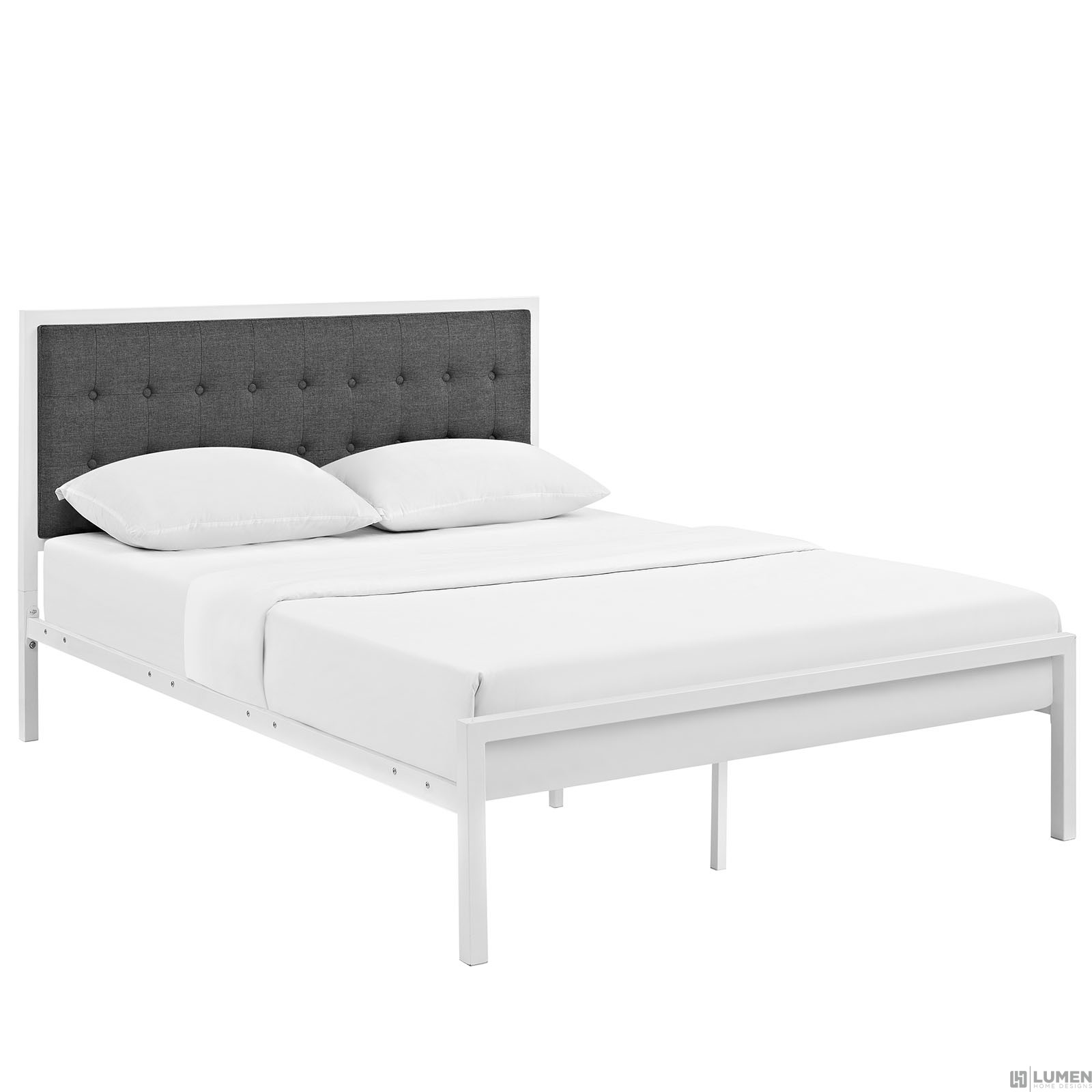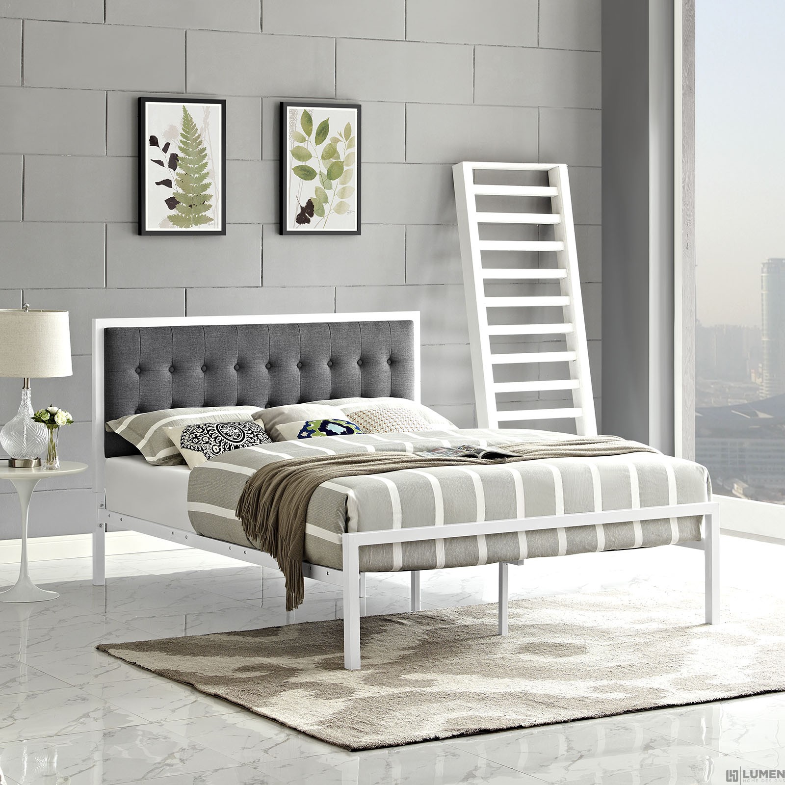 Short Description Platform Bed Frame With Headboard Sturdy Powder Coated Steel Frame Steel Rod Mattress Support System Tufted Button Polyester Headboard Weight Capacity Up To 1300 lbs Non-Marking Foot Caps Assembly Required