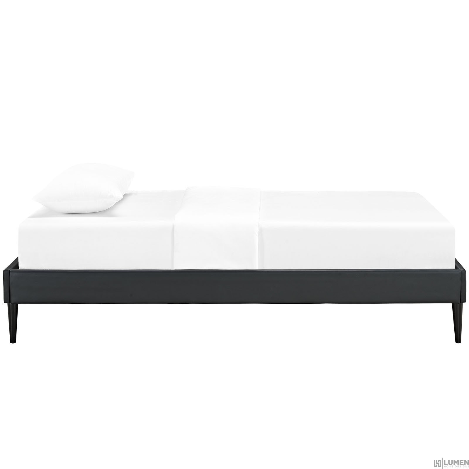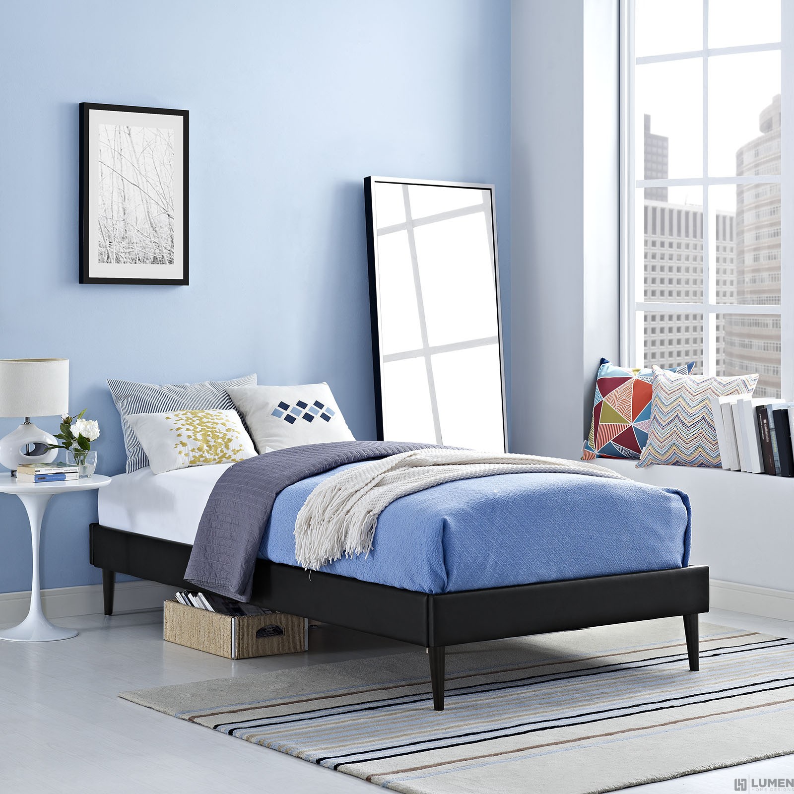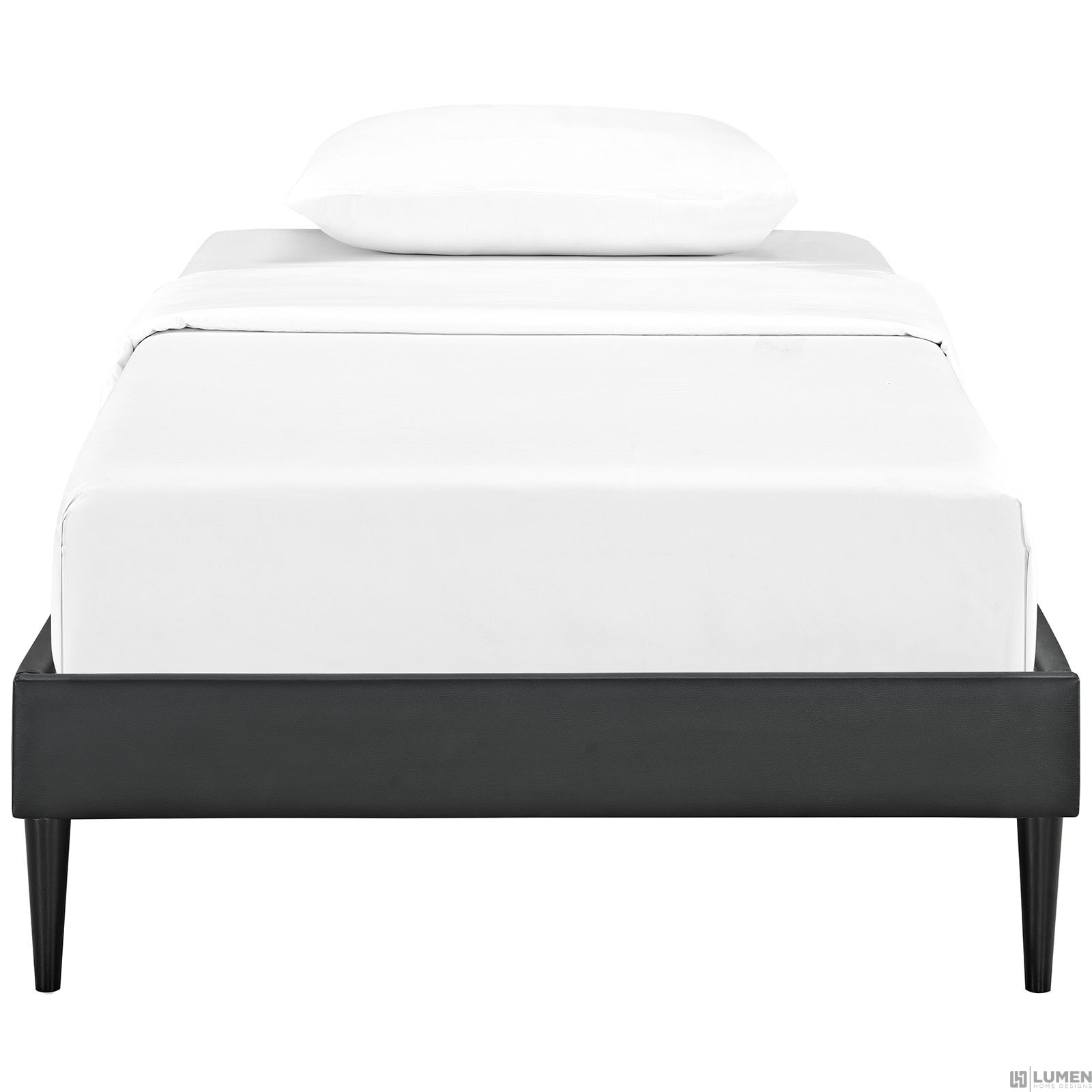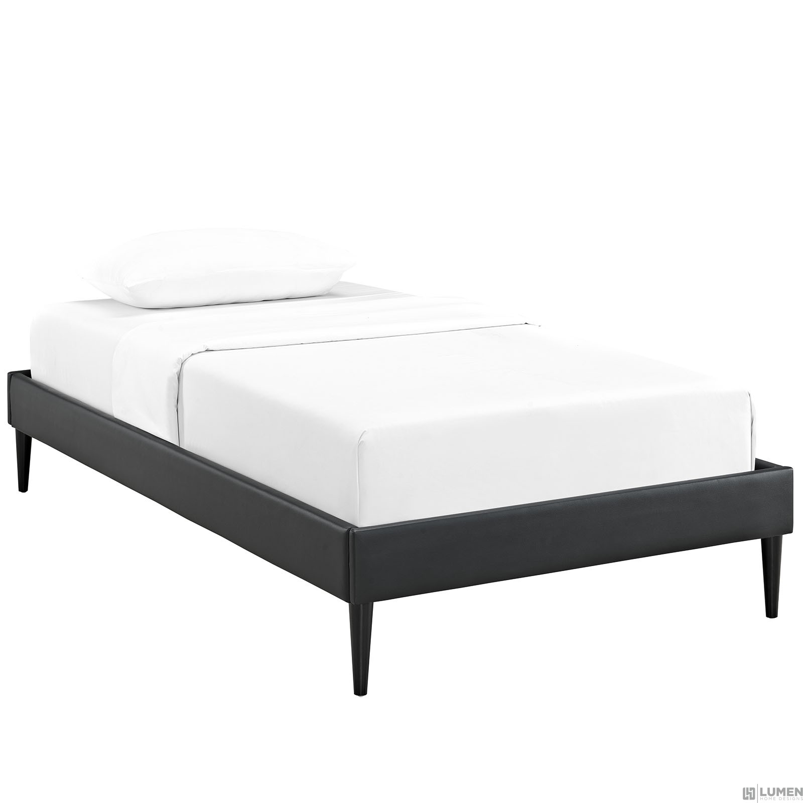 Short Description Solid Wood Frame Upholstered in Vinyl Ten Wood Support Slats Center Rail with Support Two Legs Non-marking Foot Glides Mattress not Included Assembly required