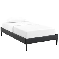 Solid Wood Frame Upholstered in Vinyl Ten Wood Support Slats Center Rail with Support Two Legs Non-marking Foot Glides Mattress not Included Assembly required