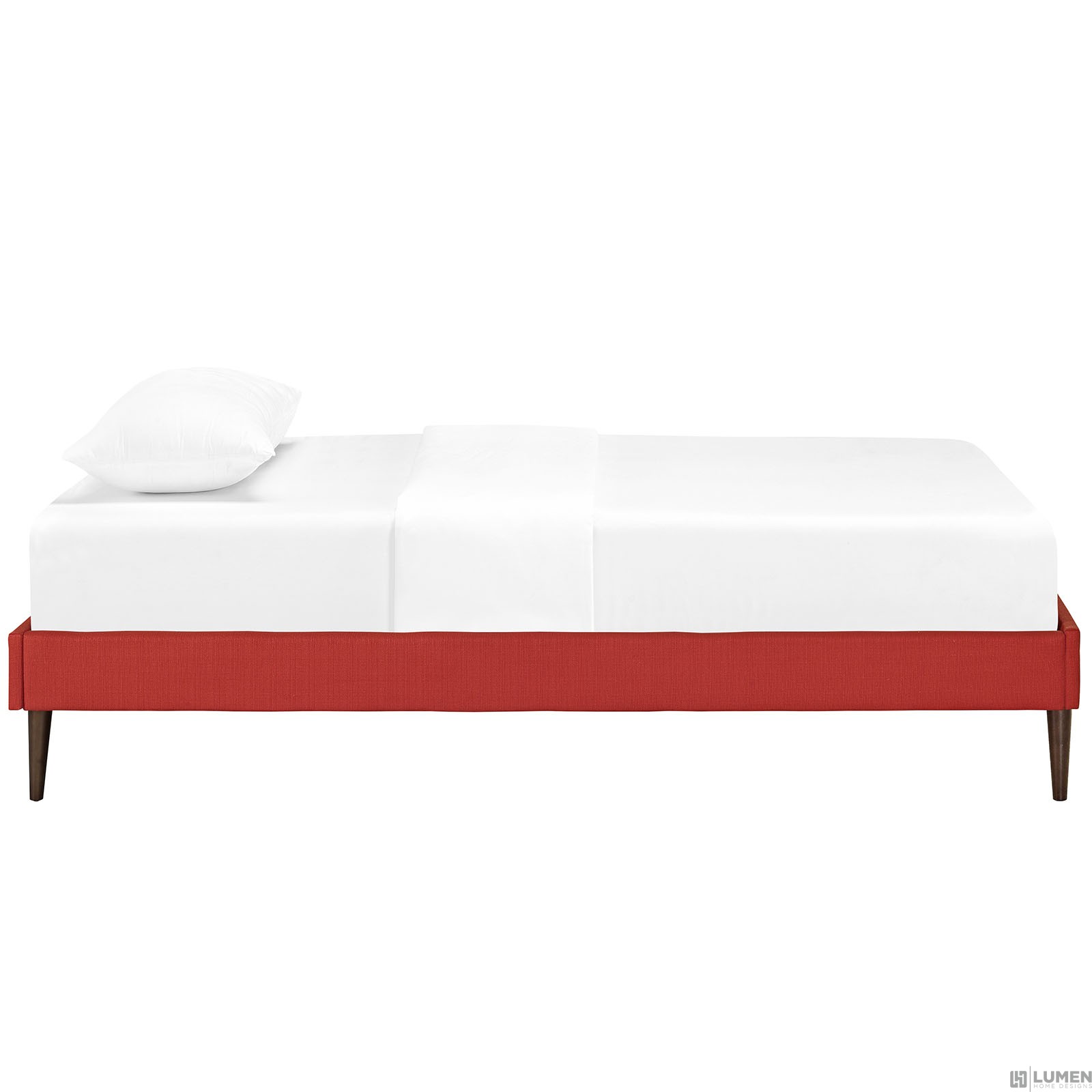 Short Description Solid Wood Frame Upholstered in Ten Wood Support Slats Polyester Center Rail with Support Two Legs Non-Marking Foot Glides Mattress not Included Assembly Required