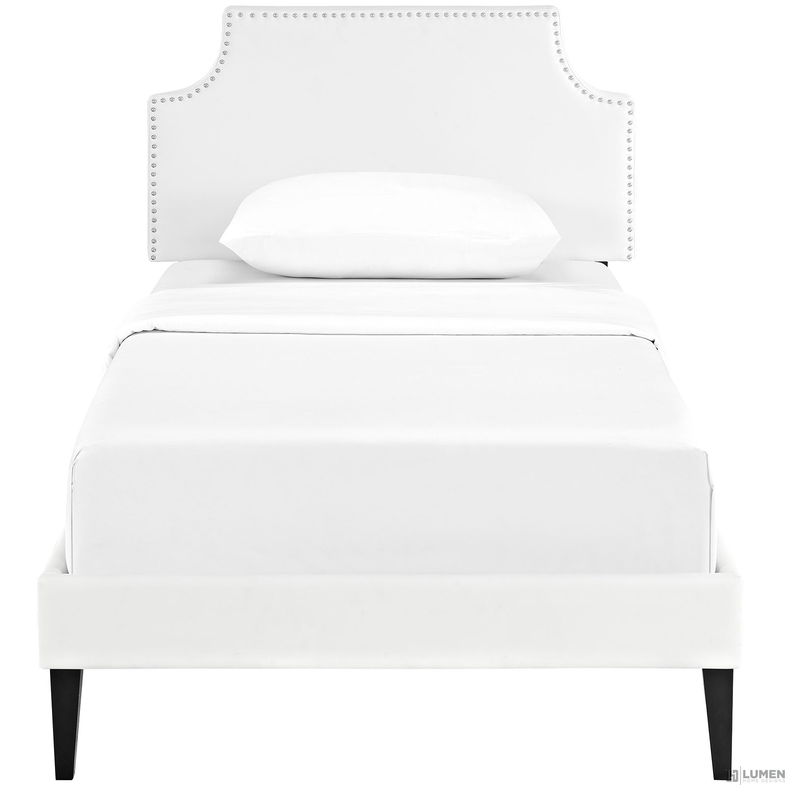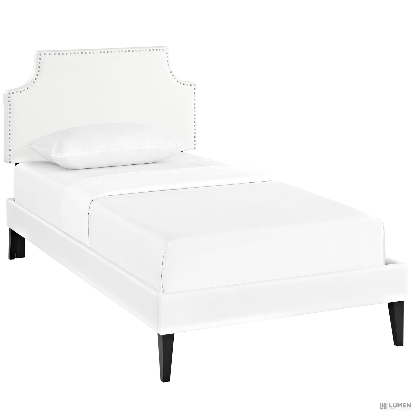 Short Description Fine Vinyl Upholstery Ten Wood Support Slats Wood Frame / Particleboard Panel Center Rail with Support Two Legs Mounts in Four Locations Dense Foam Padding Non-Marking Foot Glides
