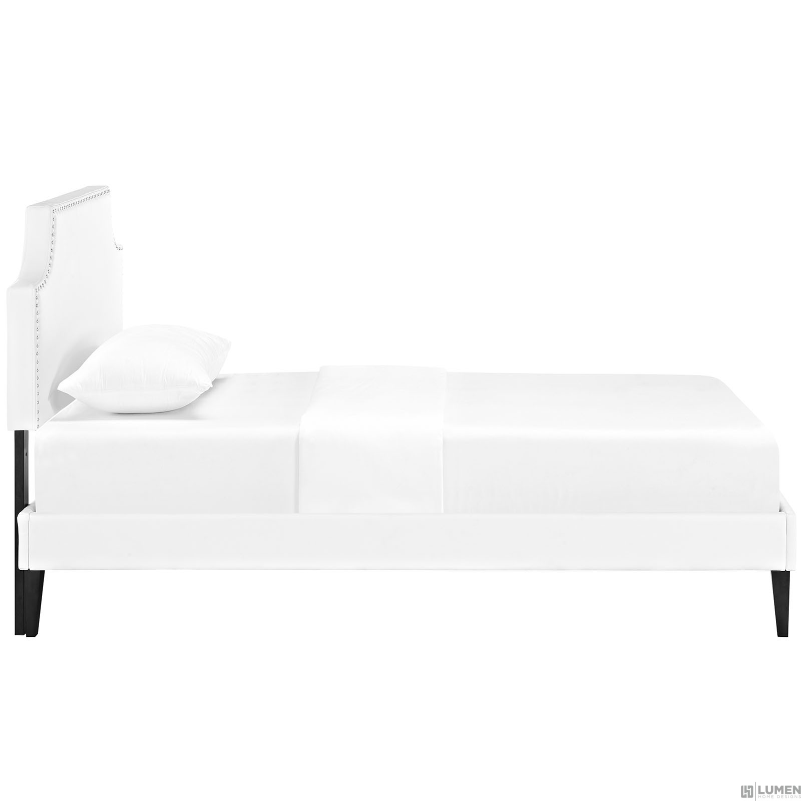 Fine Vinyl Upholstery Ten Wood Support Slats Wood Frame / Particleboard Panel Center Rail with Support Two Legs Mounts in Four Locations Dense Foam Padding Non-Marking Foot Glides