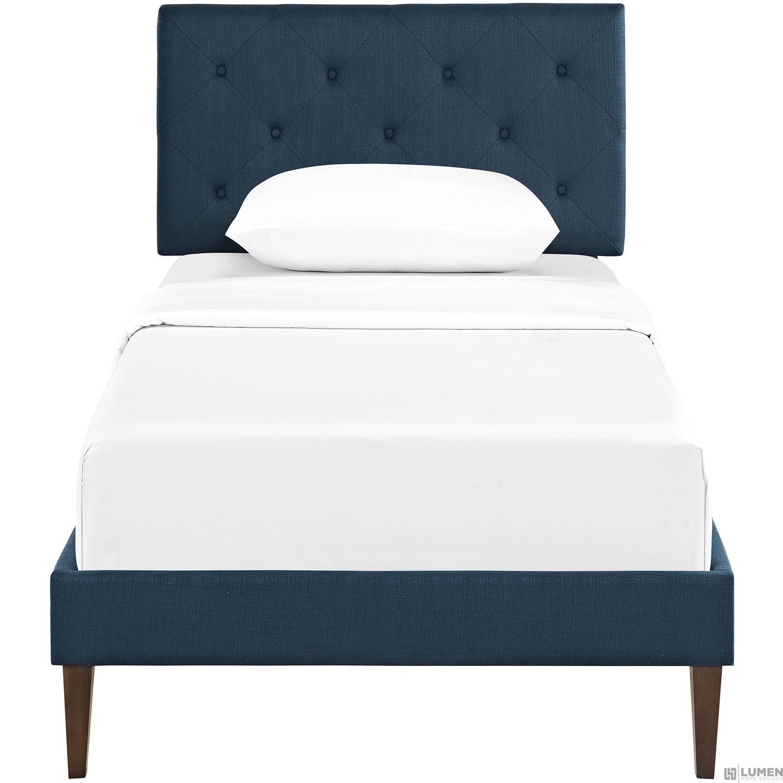 Short Description Fine Polyester Upholstery Ten Wood Support Slats Wood Frame / Particleboard Panel Center Rail with Support Two Legs Mounts in Four Locations Dense Foam Padding Non-Marking Foot Glides