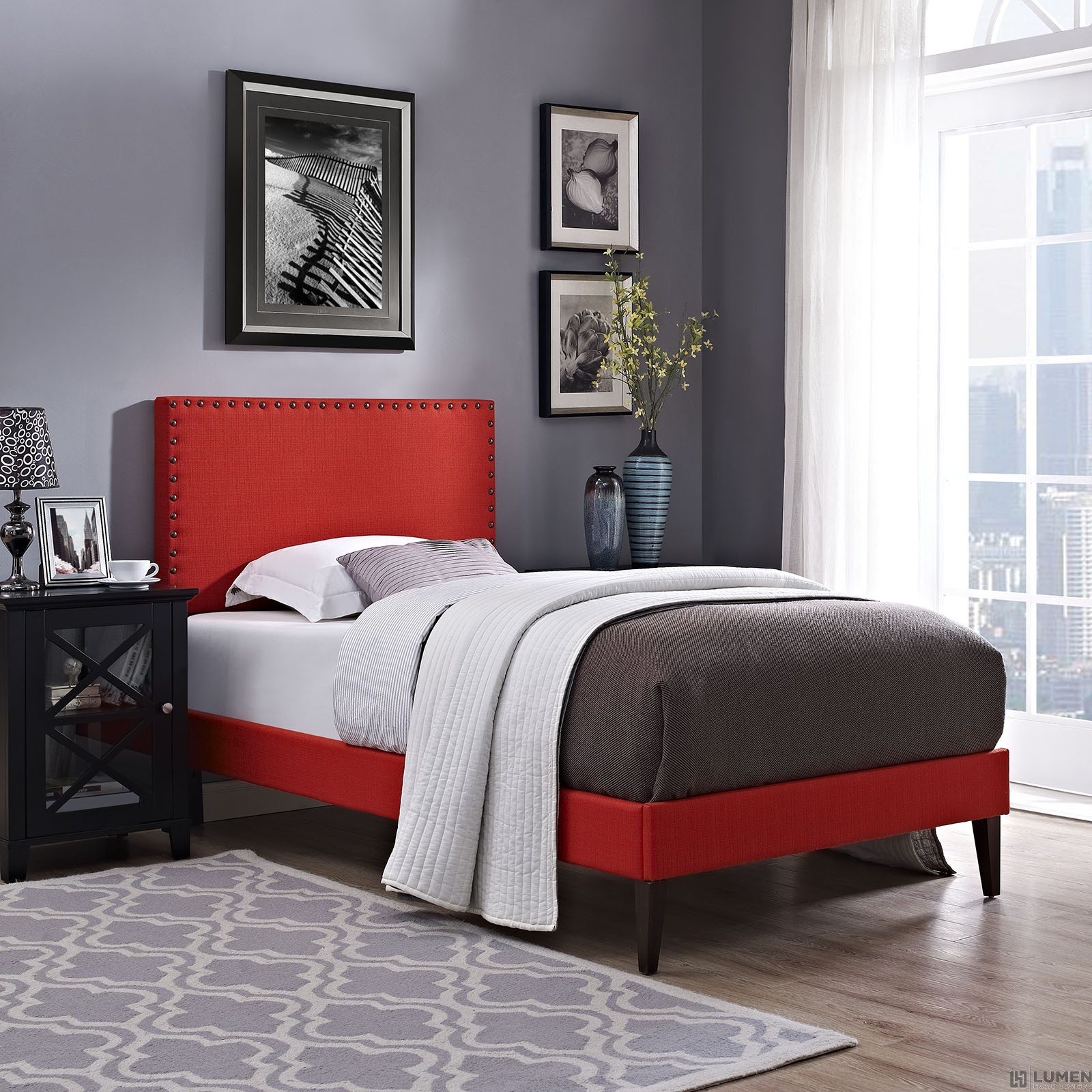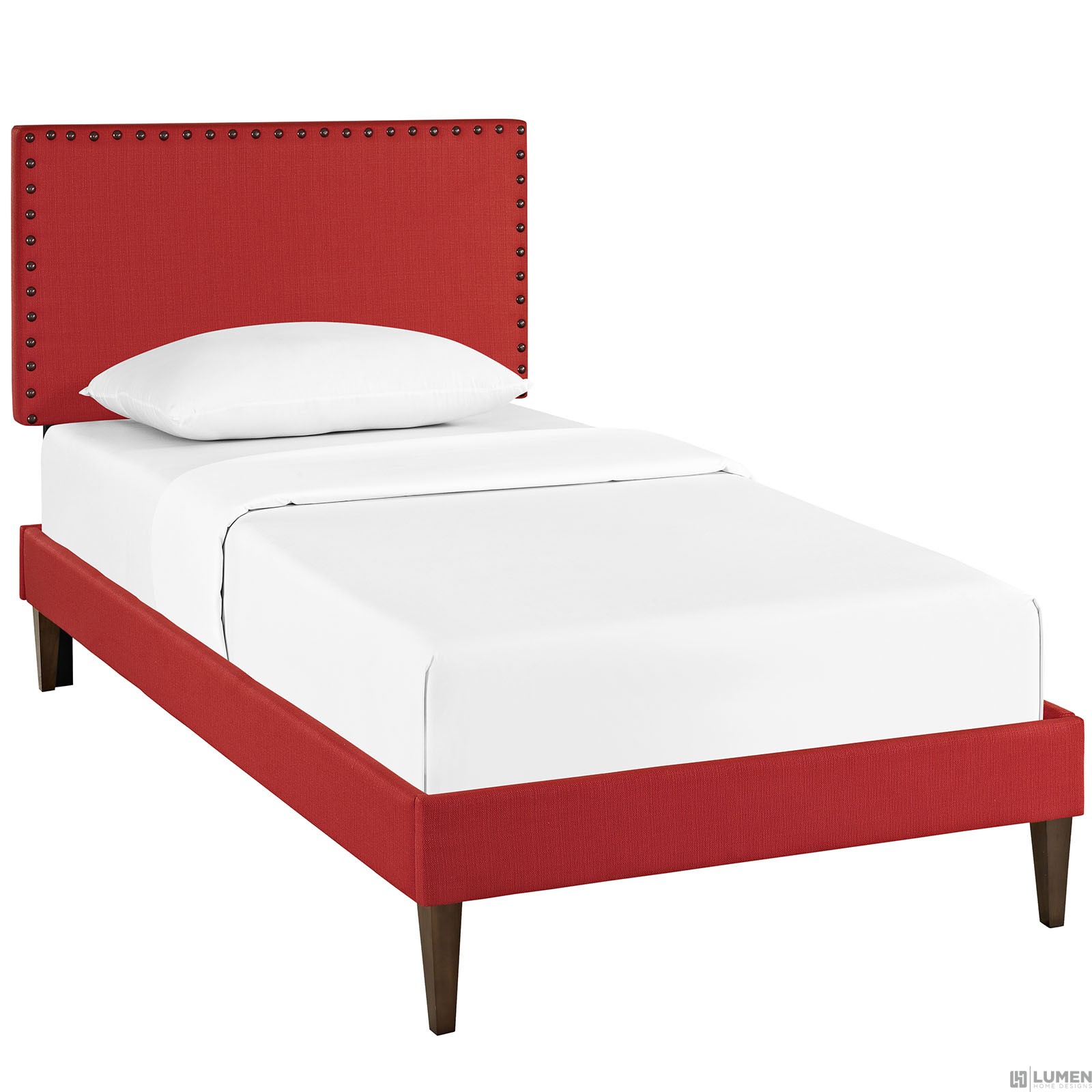 Short Description Fine Polyester Upholstery Ten Wood Support Slats Wood Frame / Particleboard Panel Center Rail with Support Two Legs Mounts in Four Locations Dense Foam Padding Non-Marking Foot Glides