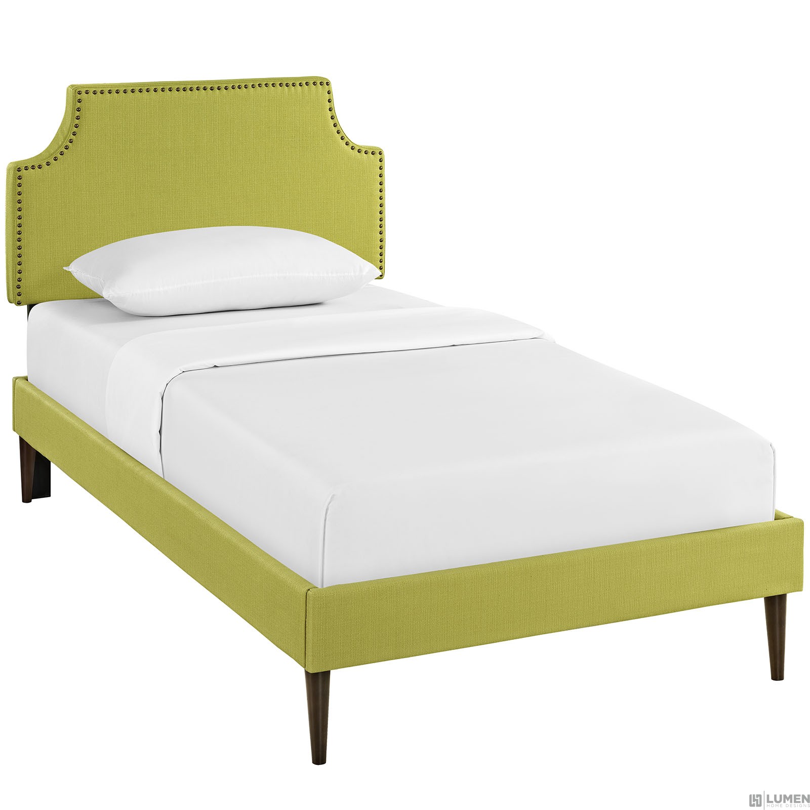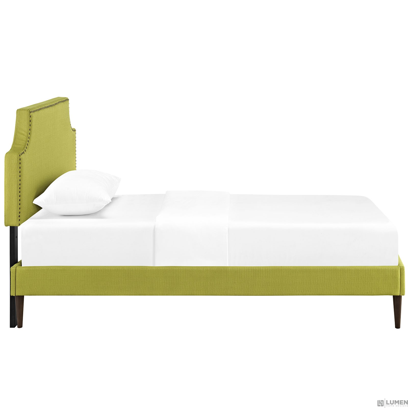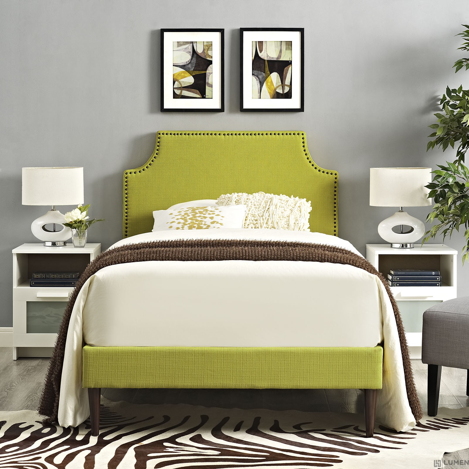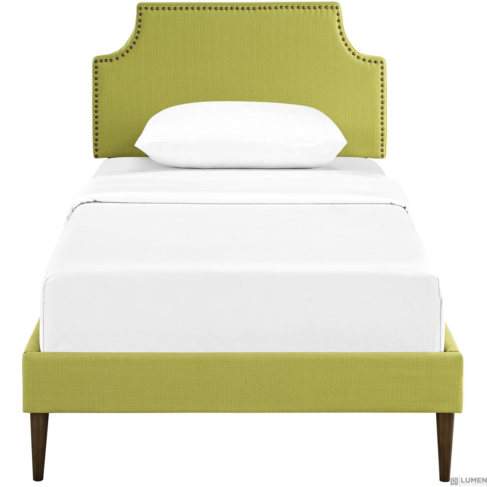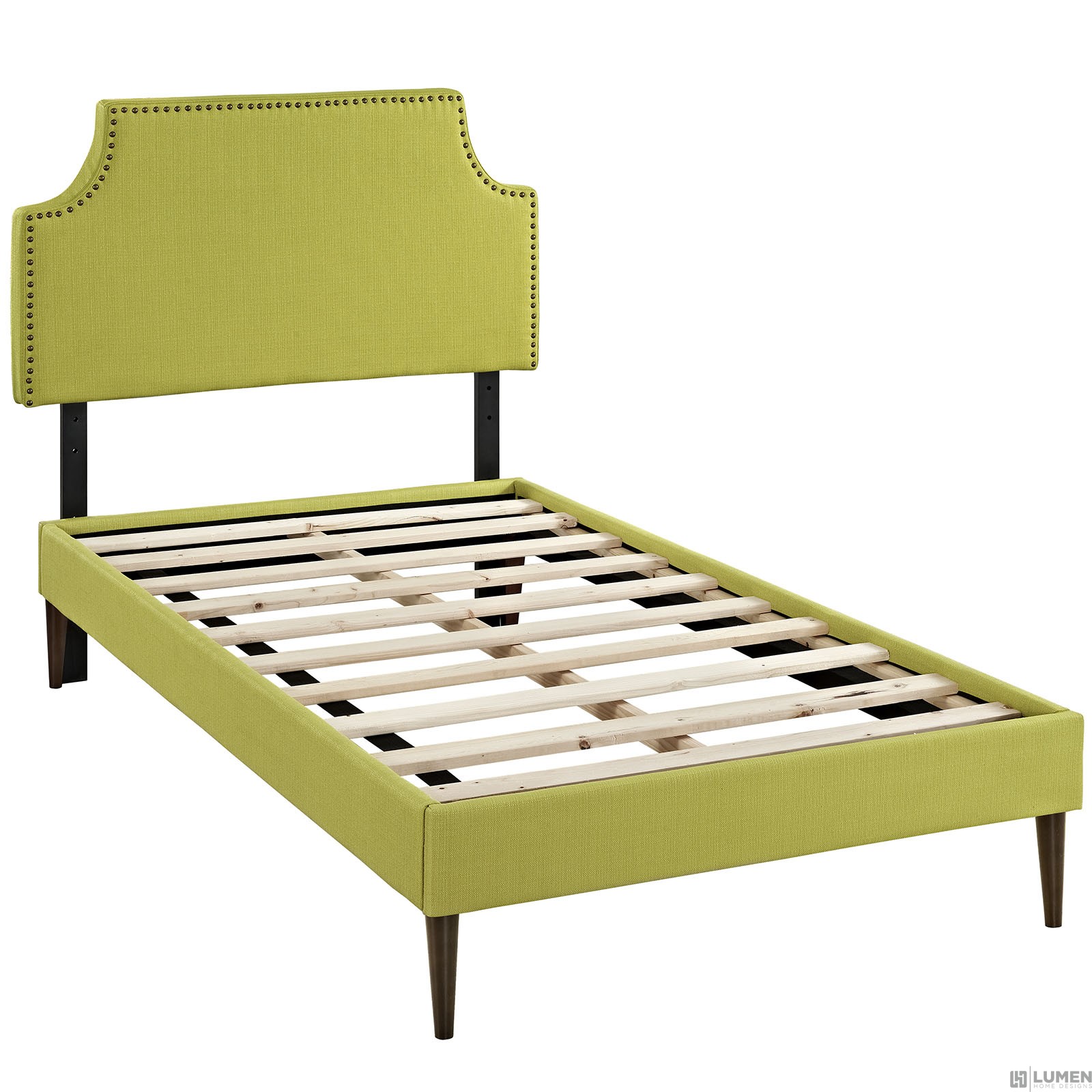 Short Description Fine Polyester Upholstery Ten Wood Support Slats Wood Frame / Particleboard Panel Center Rail with Support Two Legs Mounts in Four Locations Dense Foam Padding Non-Marking Foot Glides