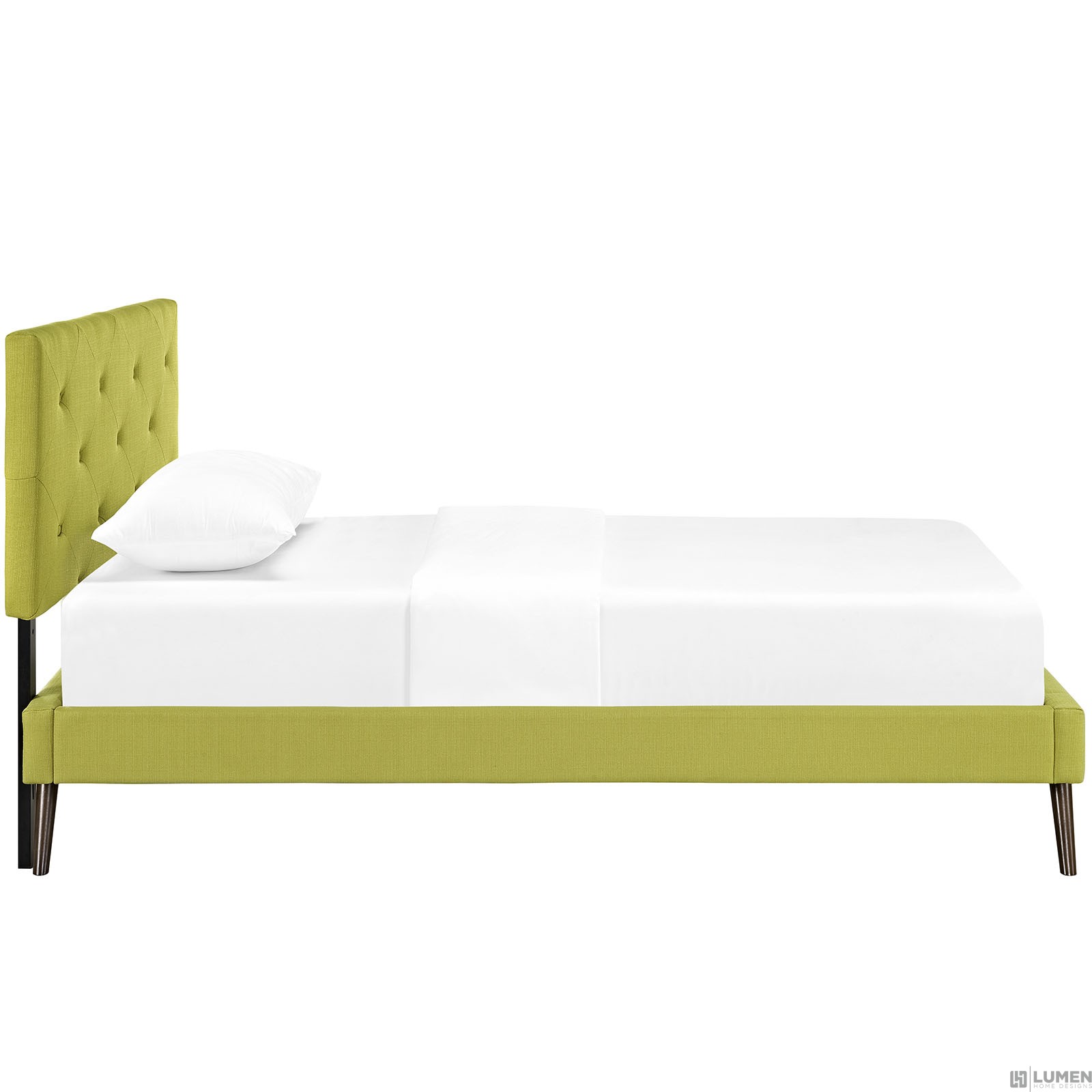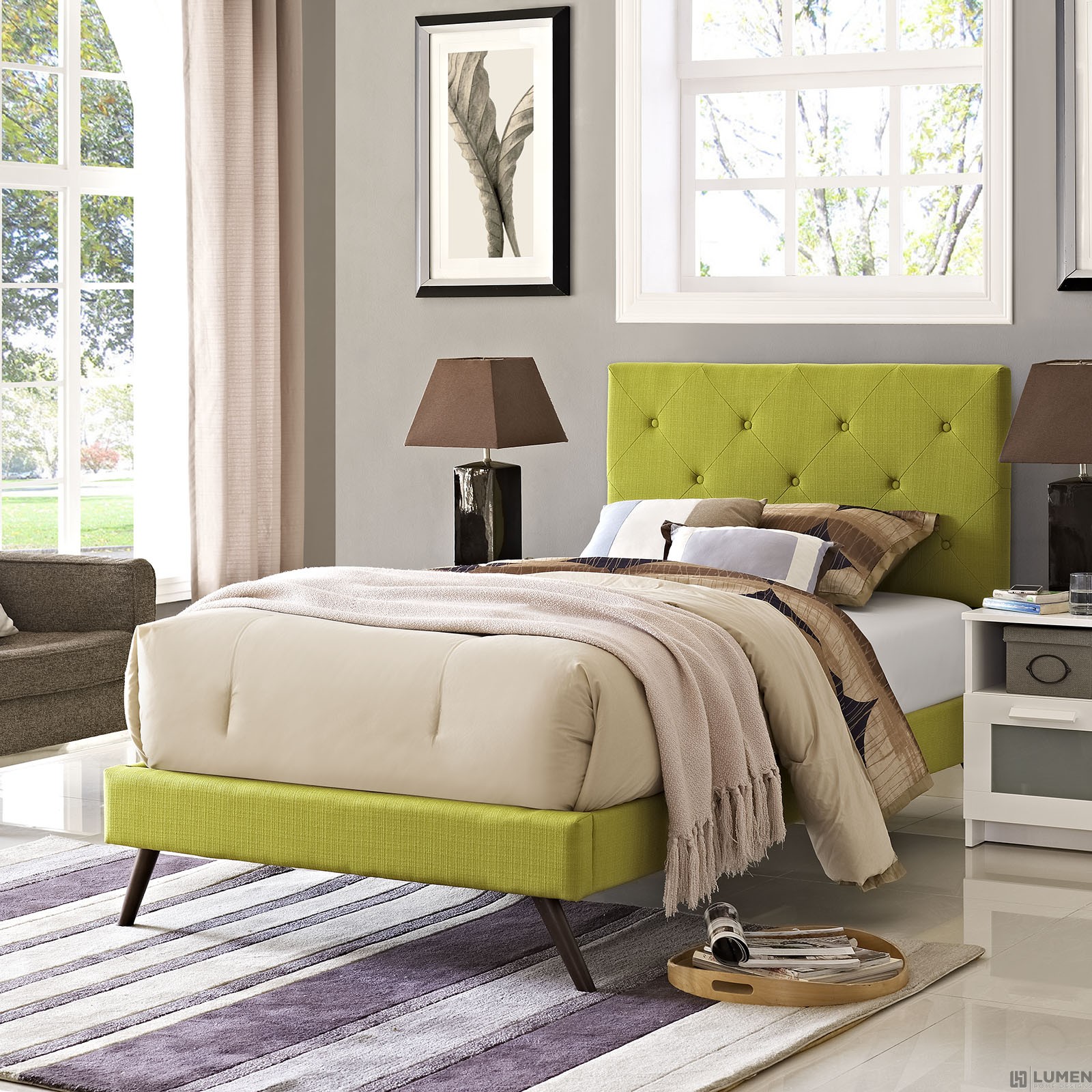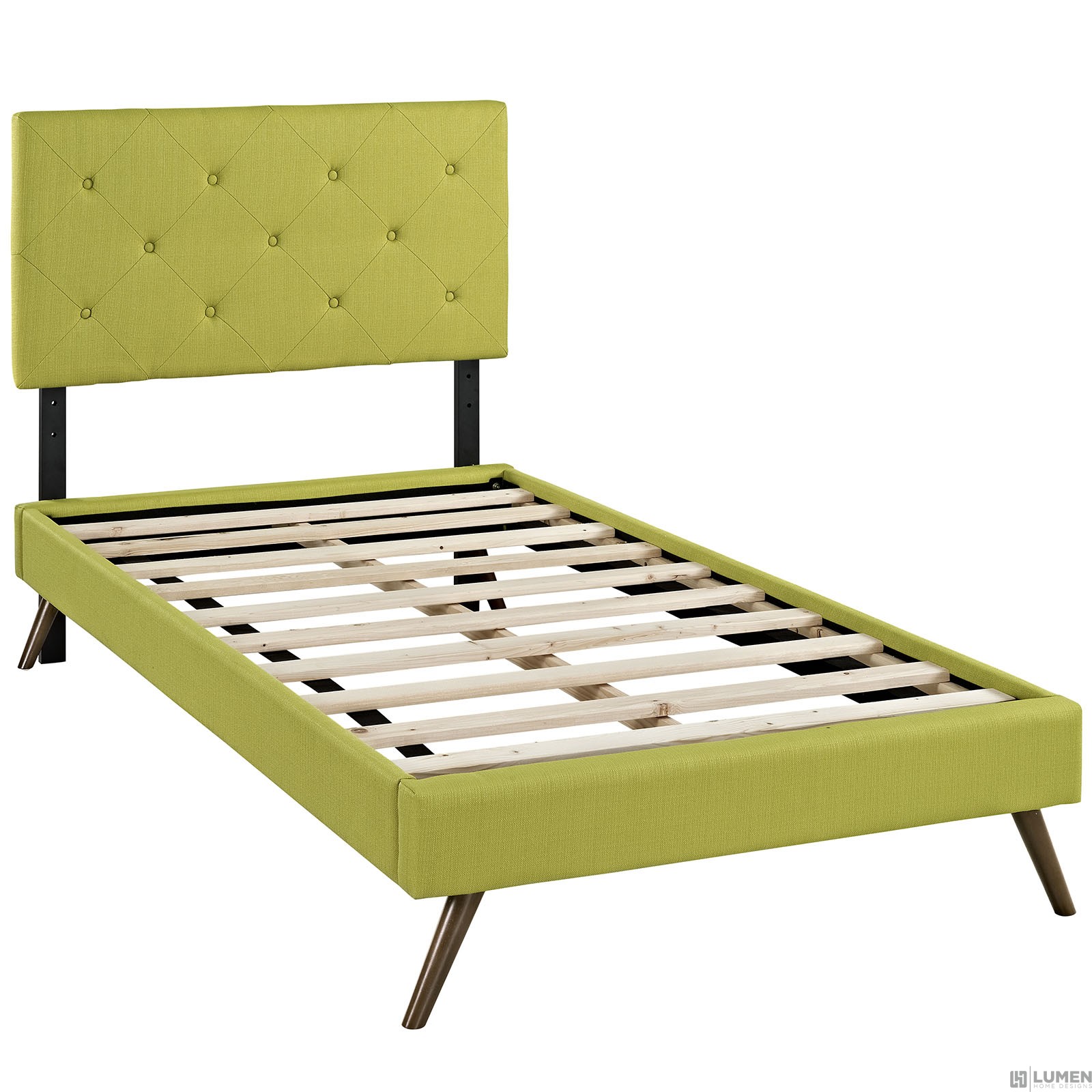 Short Description Fine Polyester Upholstery Ten Wood Support Slats Wood Frame / Particleboard Panel Center Rail with Support Two Legs Mounts in Four Locations Dense Foam Padding Non-Marking Foot Glides