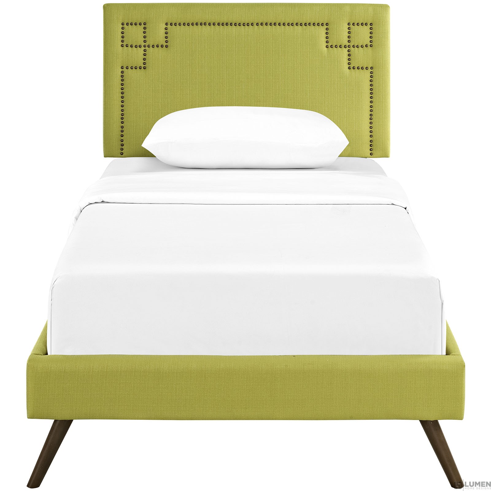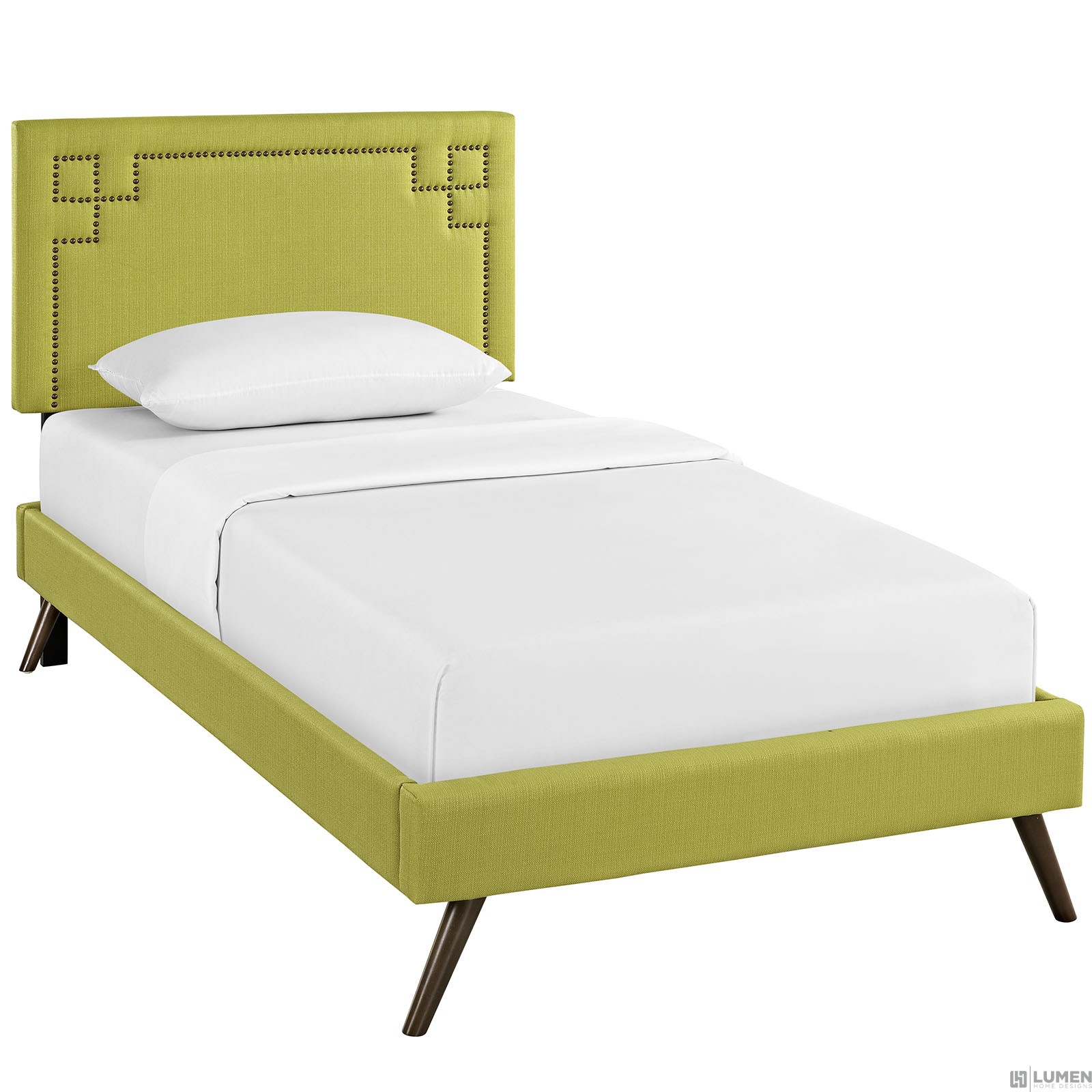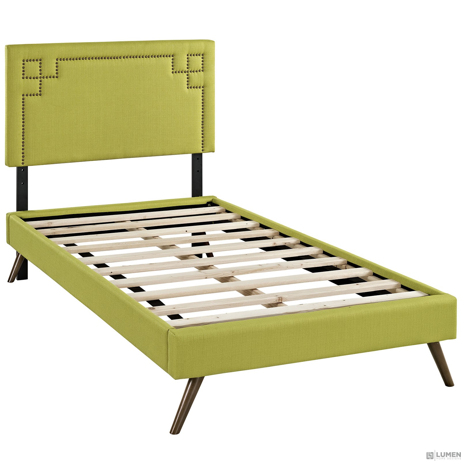 Short Description Fine Polyester Upholstery Ten Wood Support Slats Wood Frame / Particleboard Panel Center Rail with Support Two Legs Mounts in Four Locations Dense Foam Padding Non-Marking Foot Glides