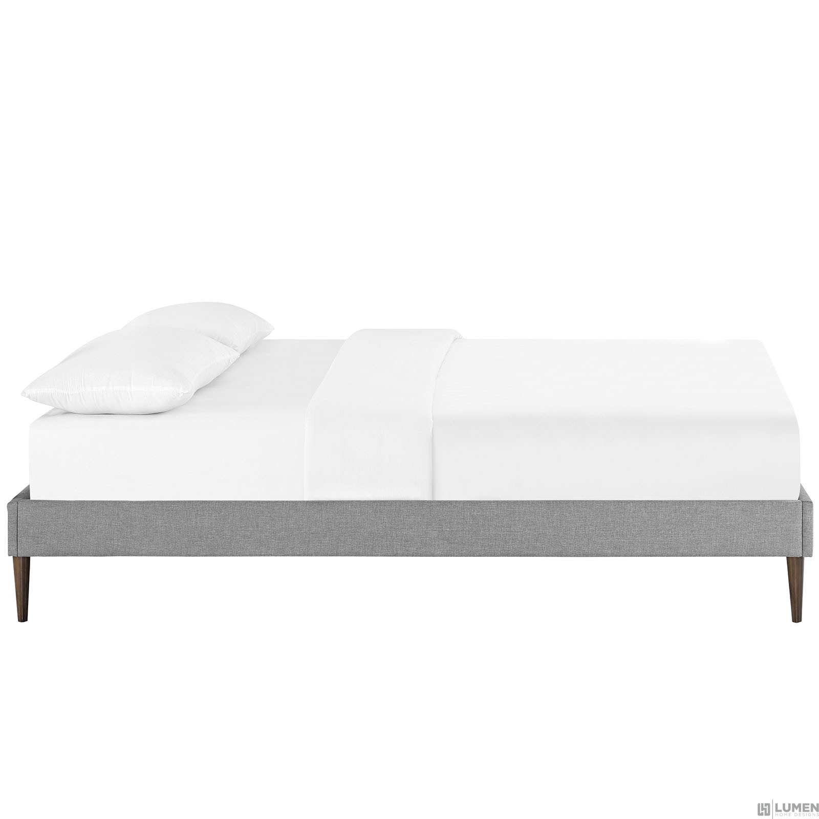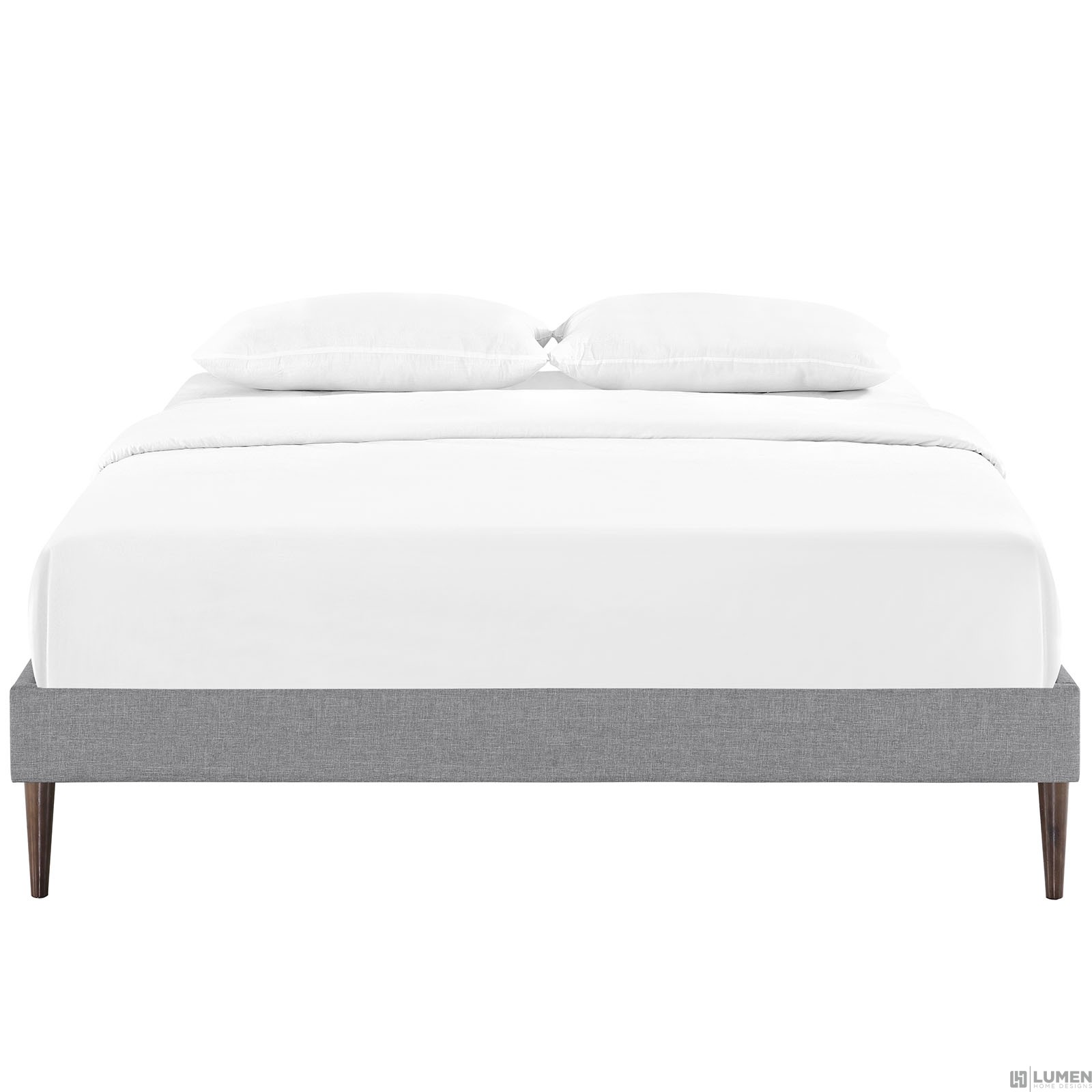 Short Description Solid Wood Frame Upholstered in Polyester Ten Wood Support Slats Center Rail with Support Two Legs Non-Marking Foot Glides Mattress not Included Assembly Required