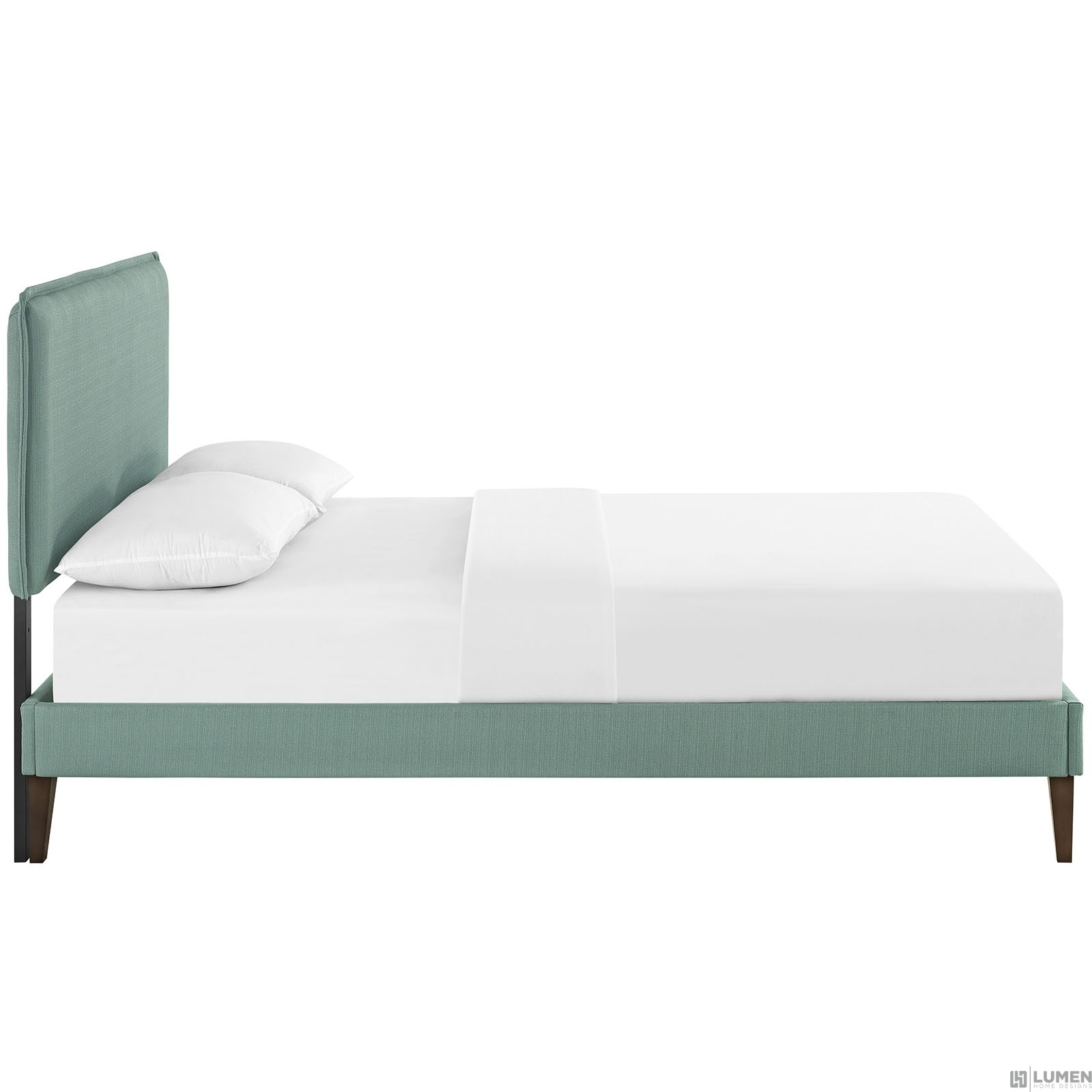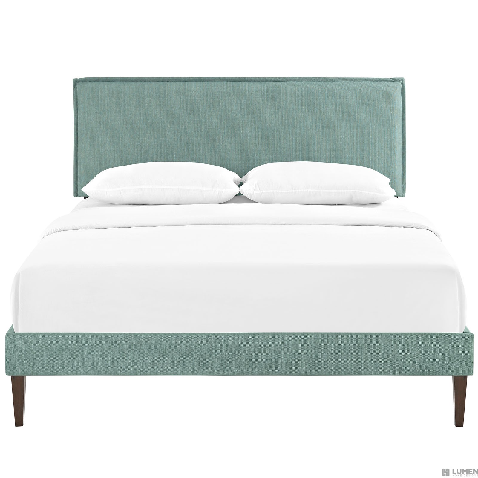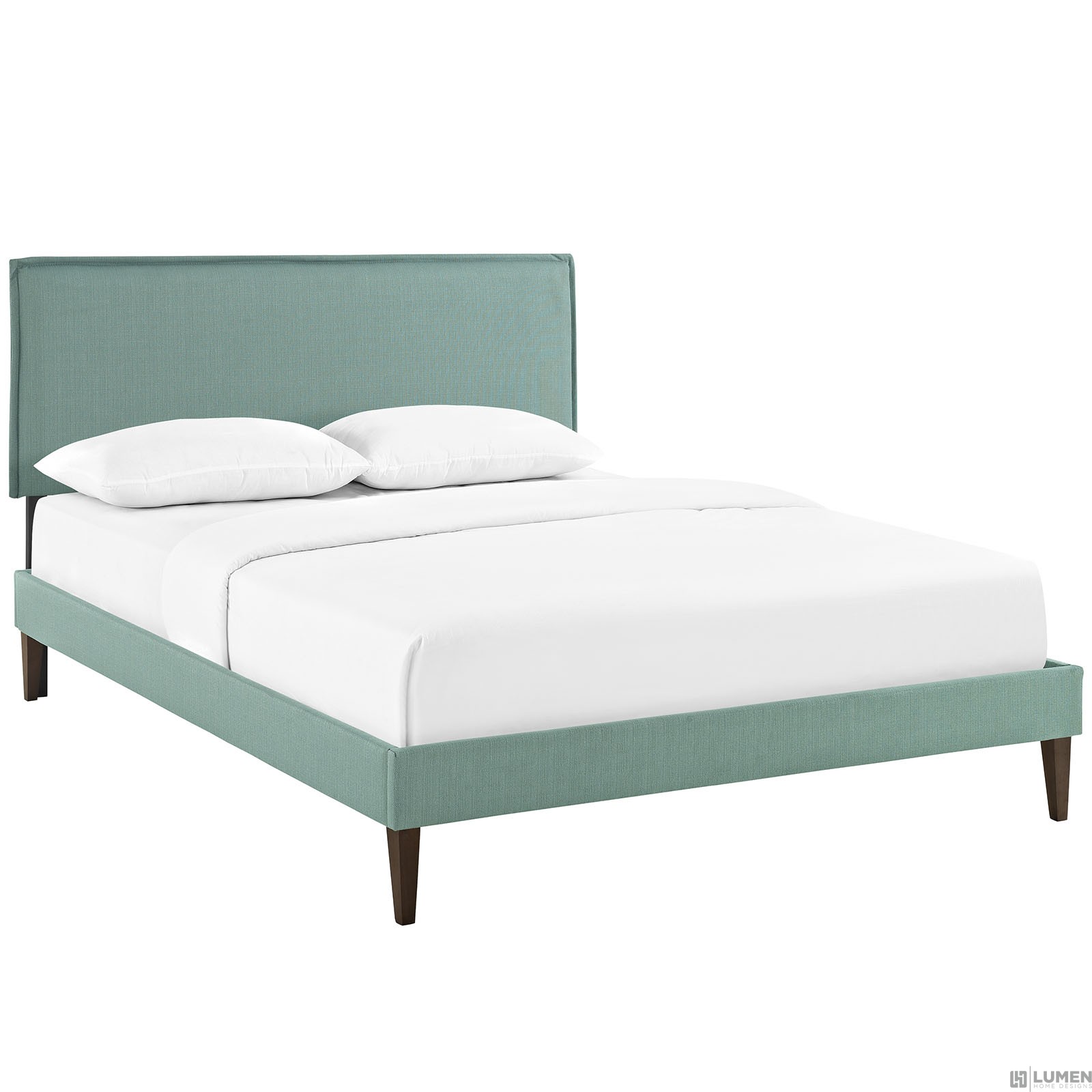 Short Description Fine Polyester Upholstery Ten Wood Support Slats Wood Frame / Particleboard Panel Center Rail with Support Two Legs Mounts in Four Locations Dense Foam Padding Non-Marking Foot Glides