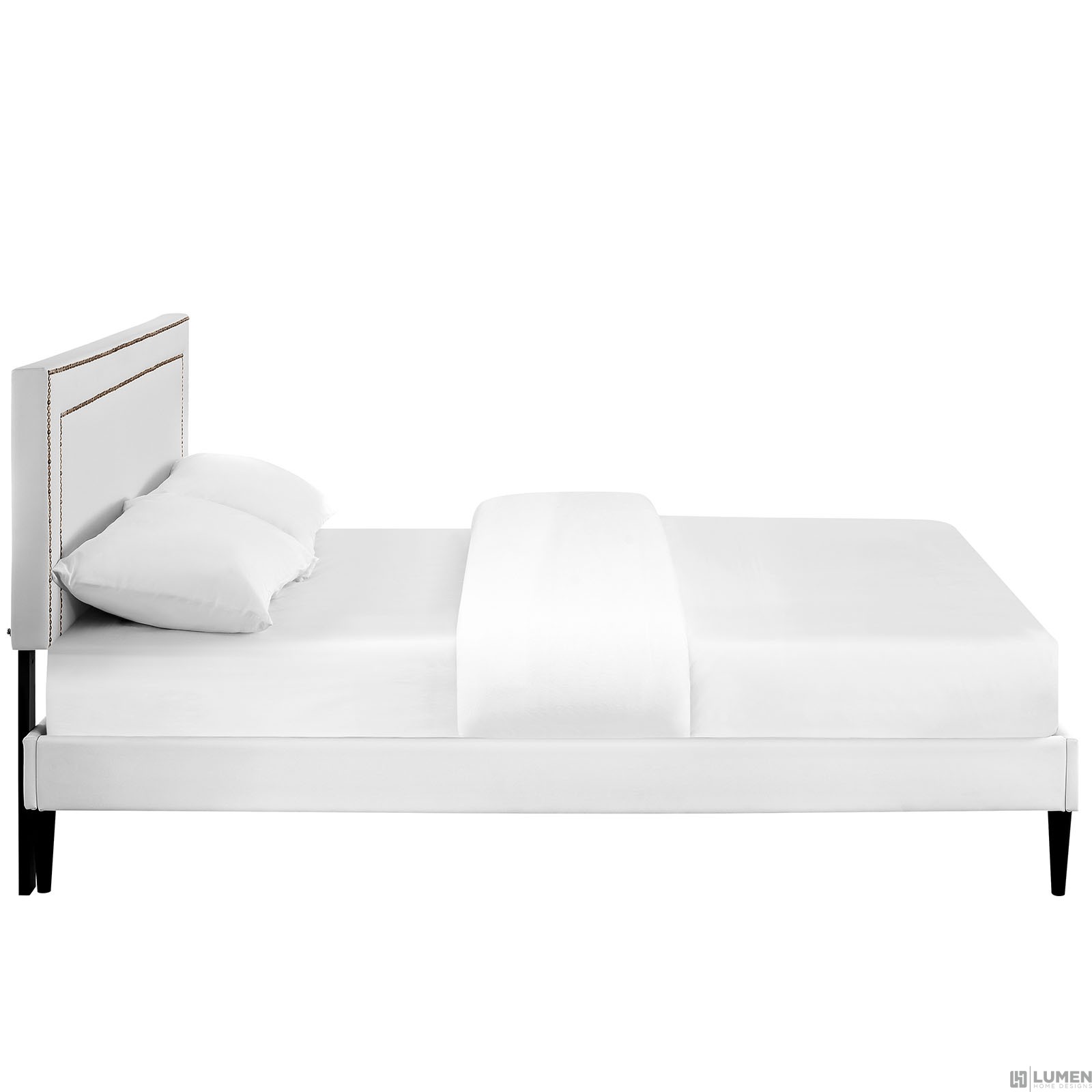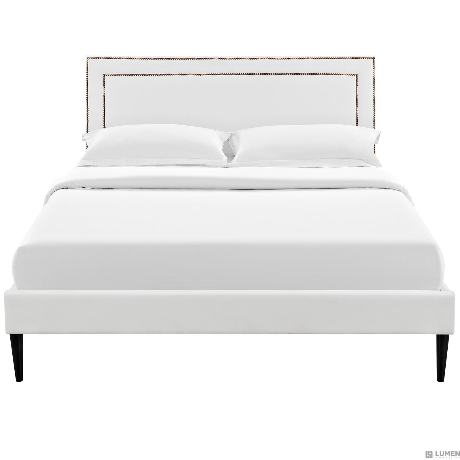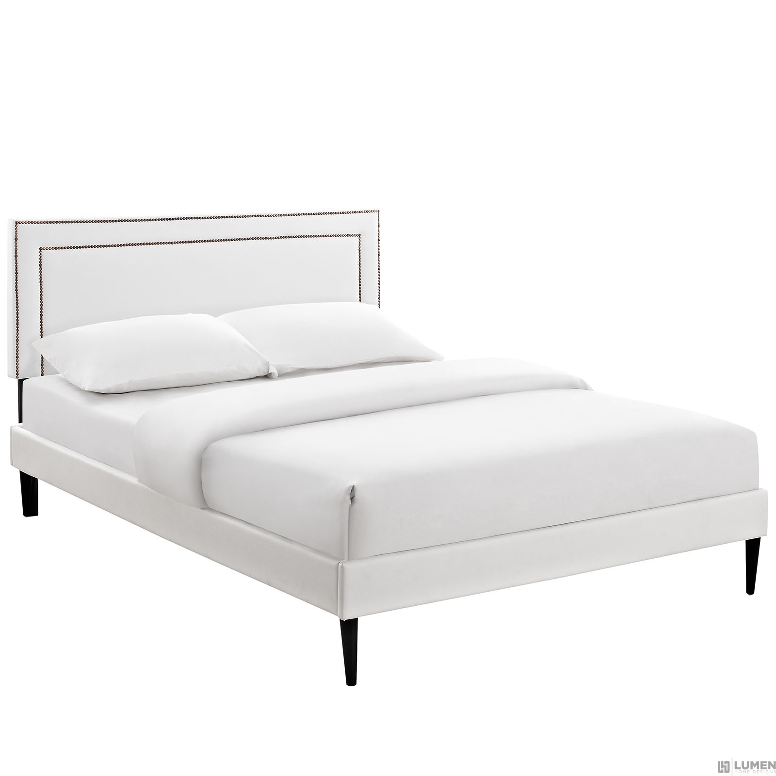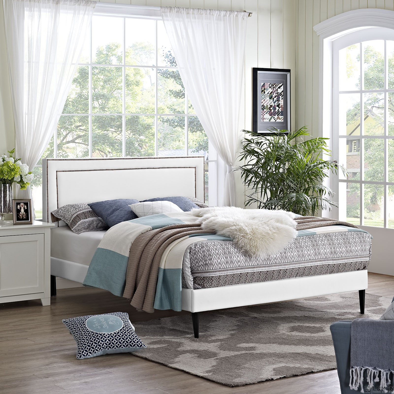 Fine Vinyl Upholstery Ten Wood Support Slats Wood Frame / Particleboard Panel Center Rail with Support Two Legs Mounts in Four Locations Dense Foam Padding Non-Marking Foot Glides
