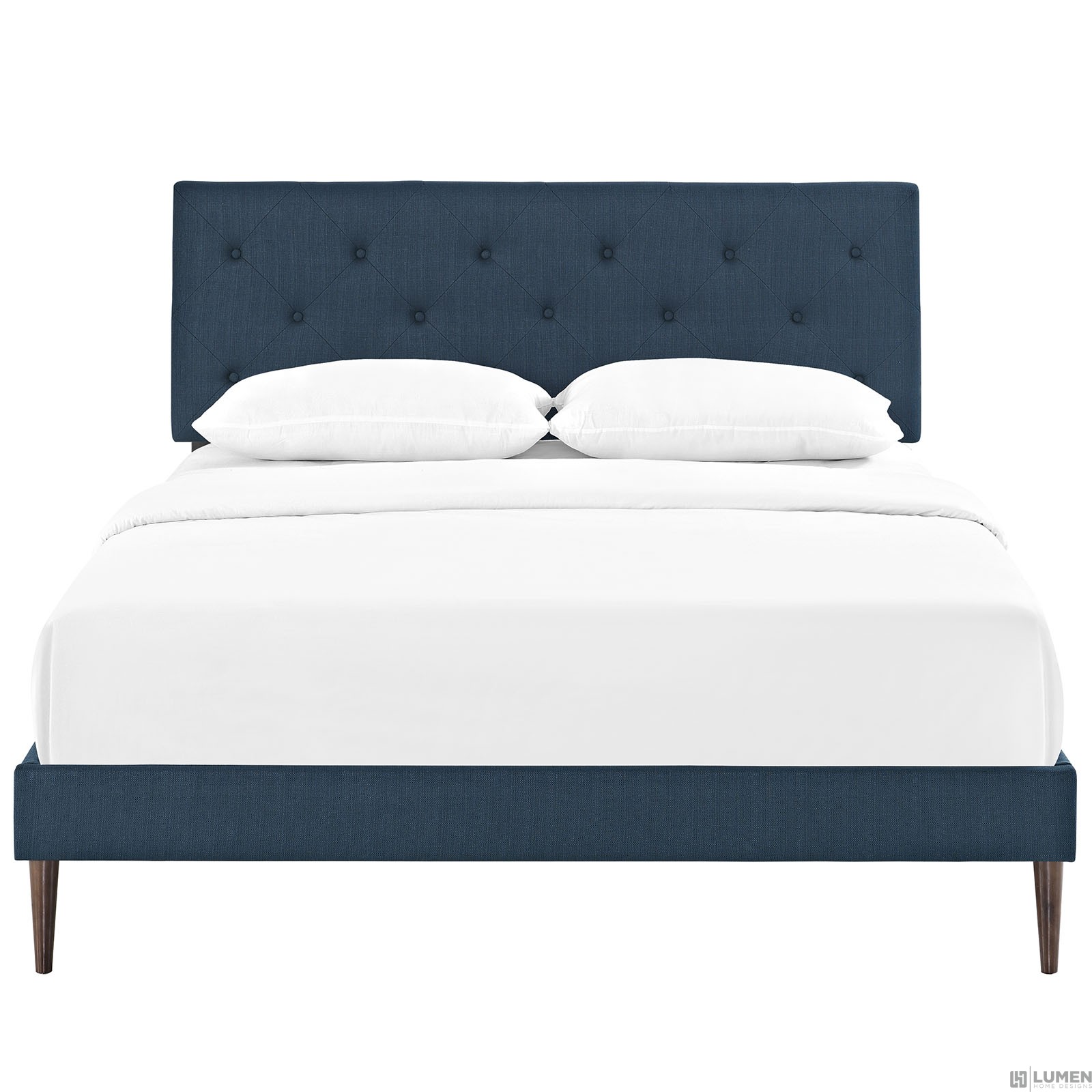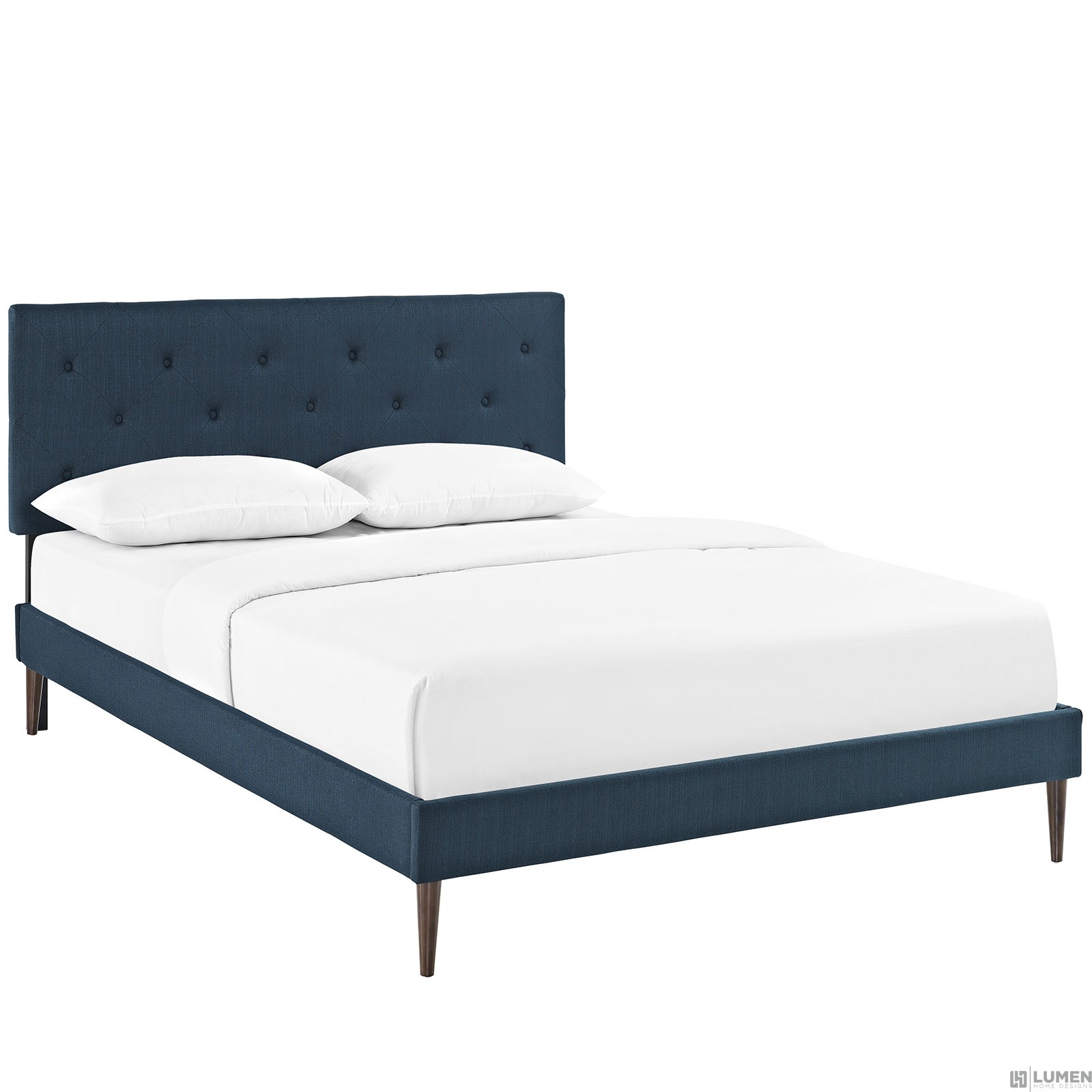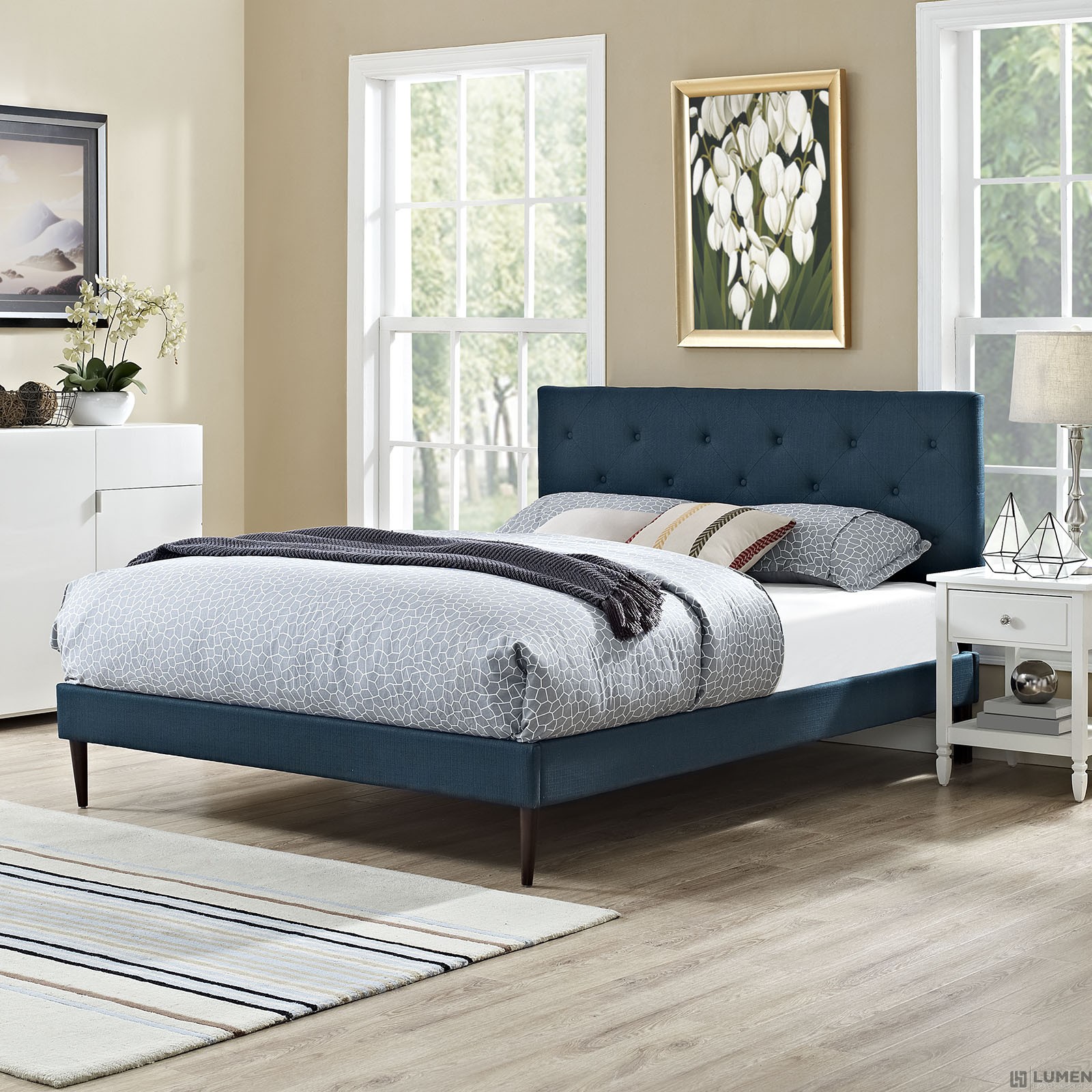 Short Description Fine Polyester Upholstery Ten Wood Support Slats Wood Frame / Particleboard Panel Center Rail with Support Two Legs Mounts in Four Locations Dense Foam Padding Non-Marking Foot Glides