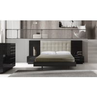 From our Hanover Bedroom set, this bed packs good looks and durability into one piece. The headboard features a foam padded insert with two handsome lacquered wings for a modern look. Its platform base does not require a box spring, just your mattress. Our Hanover bed was crafted with a strict focus on quality and durability, using premium woods and natural lacquers. Take your pick: it comes in both King and Queen size. Matching dresser and nightstands are also available. Essentials about this piece: Expertly crafted using solid wood veneers and natural lacquers. Some assembly required. Color scheme: Black and Beige, high gloss. Dimensions: King - 45.3" H x 129" L x 84" D. Dimensions: Queen - 45.3" H x 113" L x 84" D. Other pieces in this set sold separately.