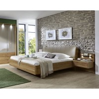 Short Description Rustic nature meets modern chic design with our Serena Bedroom set. The beautiful oak wood and cream color make a unique combination in this stylish set, neutral tones that compliment any color. Made in Germany, Serena has the quality and image to make any bedroom a sight for sore eyes. The set is available in King or Queen minimalist style floating bed with cream color Eco leather headboard and led lights, includes a tall dresser with convenient lighting and drawers, a mirror, two floating night stands which include two night stand panels and glass shelves. Features: Frame: Solid Oak Headboard cushion in faux leather Sahara Floating Footboard Dresser and nightstand equipped with soft-closing tracksFrame: Solid Oak Headboard cushion in faux leather Sahara Floating Footboard Dresser and nightstand equipped with soft-closing tracks