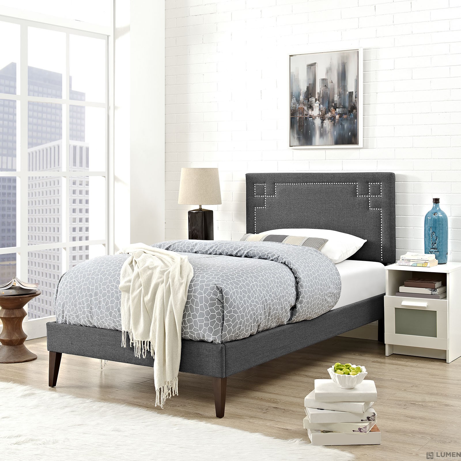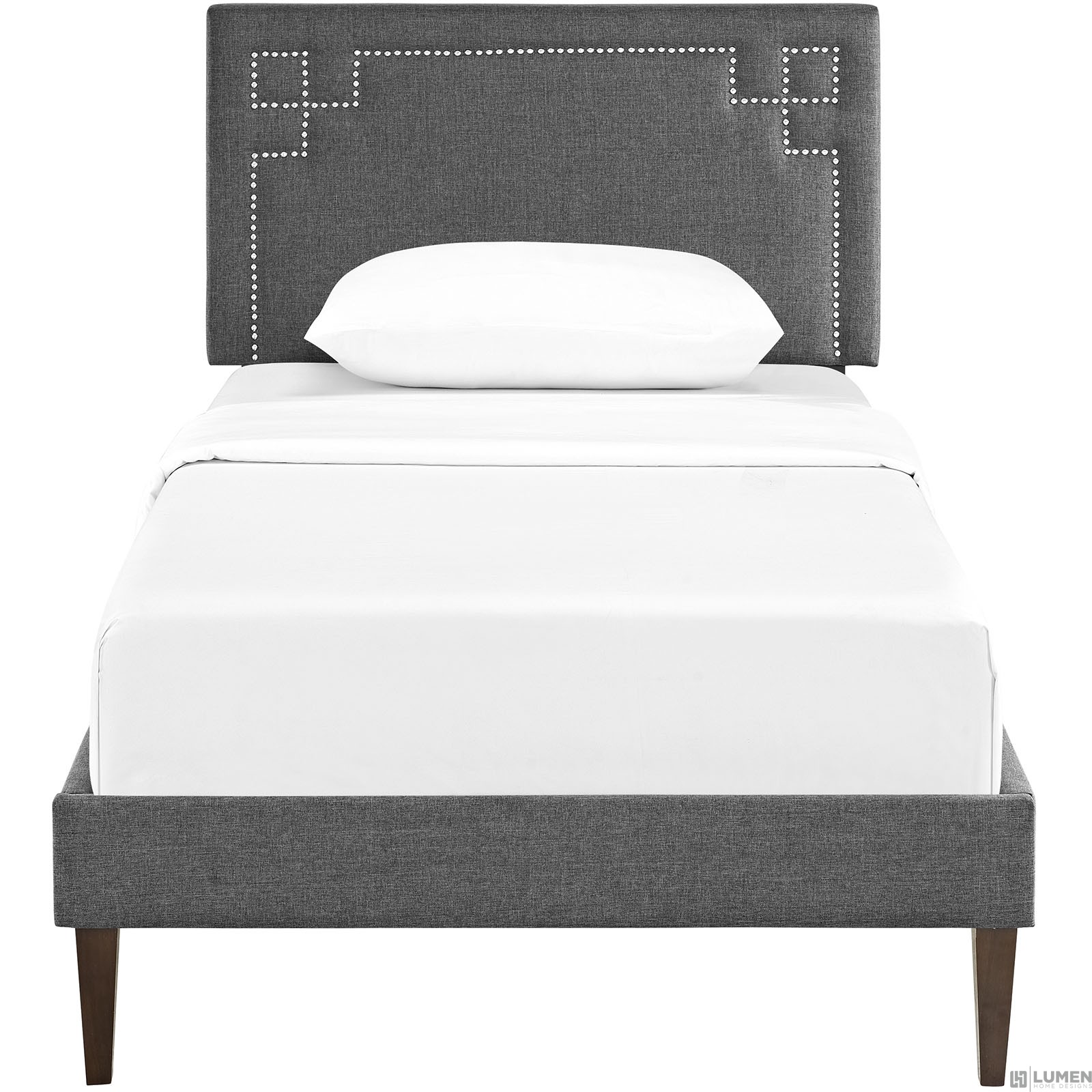 Short Description Fine Polyester Upholstery Ten Wood Support Slats Wood Frame / Particleboard Panel Center Rail with Support Two Legs Mounts in Four Locations Dense Foam Padding Non-Marking Foot Glides