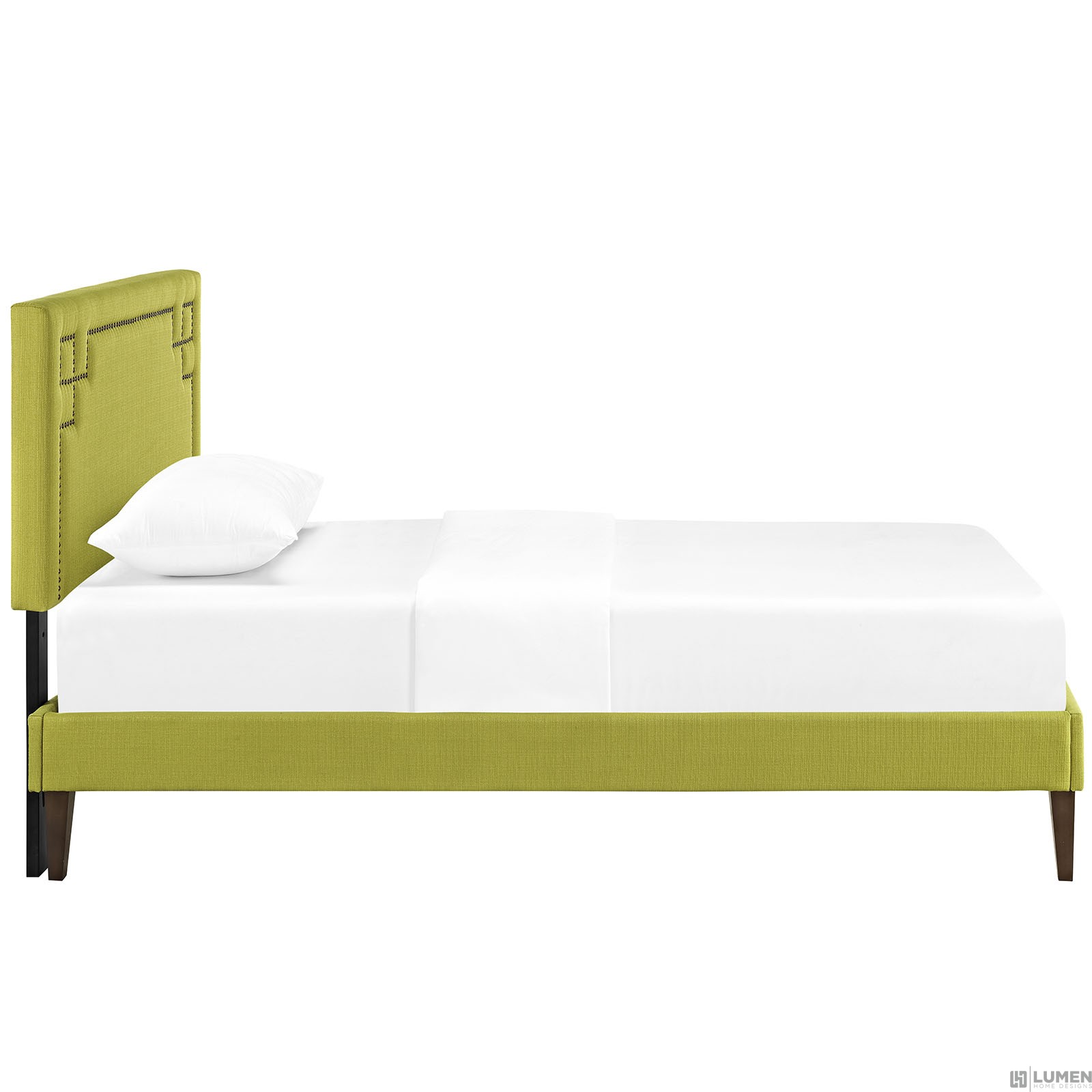 Short Description Fine Polyester Upholstery Ten Wood Support Slats Wood Frame / Particleboard Panel Center Rail with Support Two Legs Mounts in Four Locations Dense Foam Padding Non-Marking Foot Glides