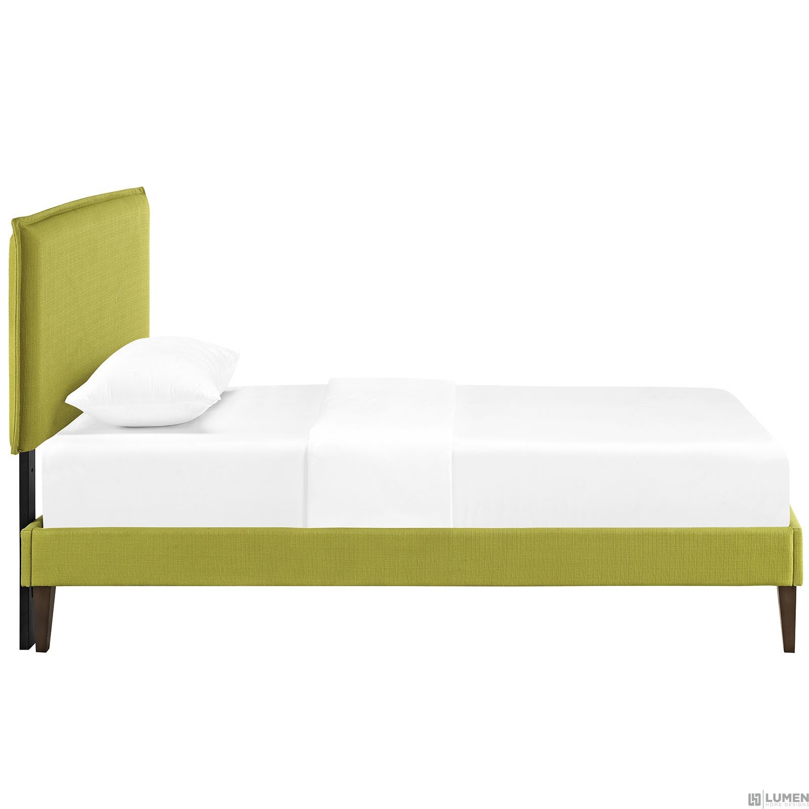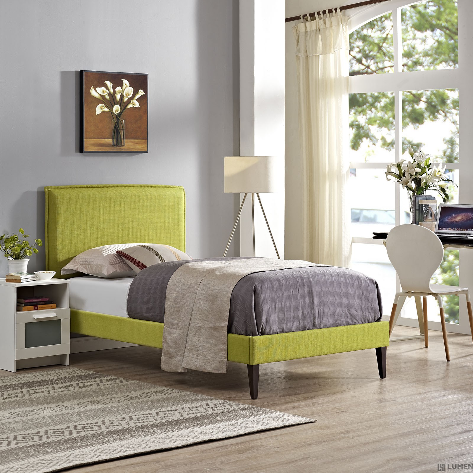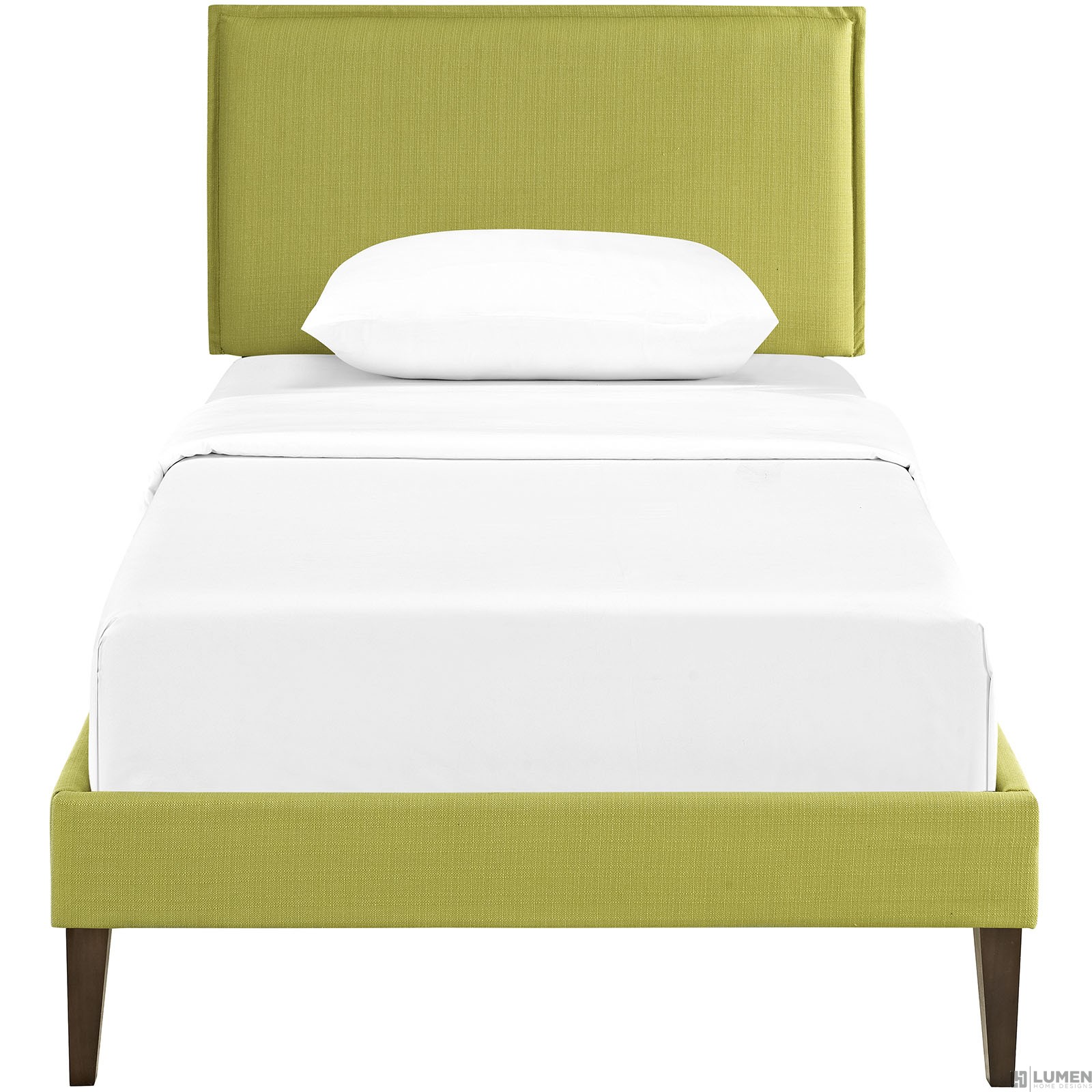 Short Description Fine Polyester Upholstery Ten Wood Support Slats Wood Frame / Particleboard Panel Center Rail with Support Two Legs Mounts in Four Locations Dense Foam Padding Non-Marking Foot Glides