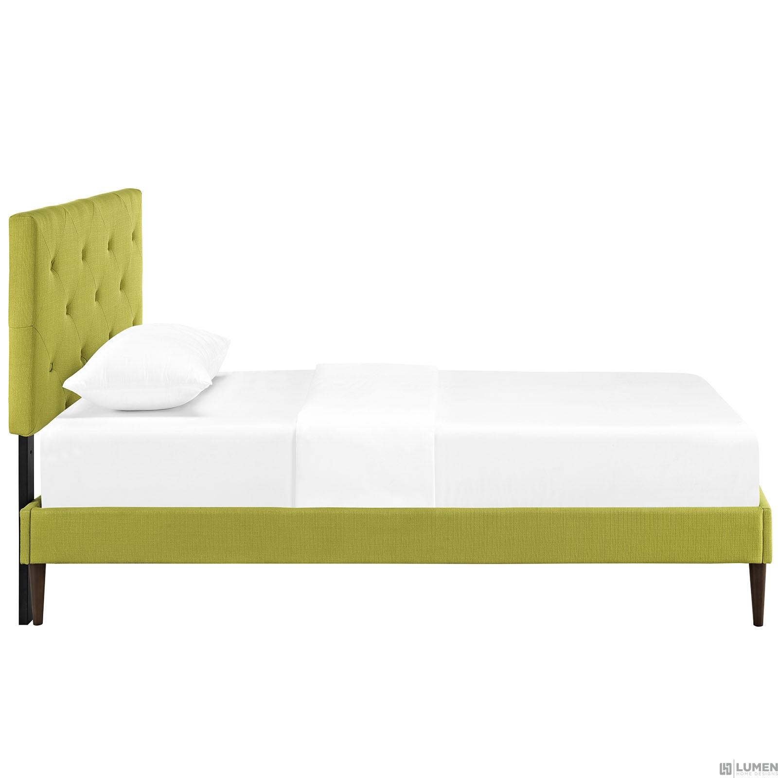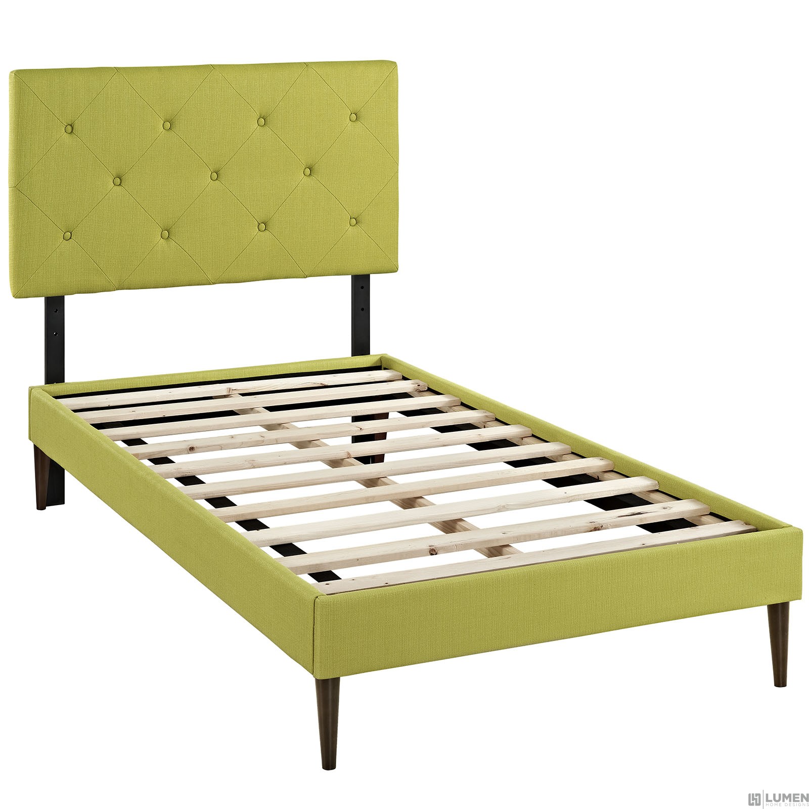 Short Description Fine Polyester Upholstery Ten Wood Support Slats Wood Frame / Particleboard Panel Center Rail with Support Two Legs Mounts in Four Locations Dense Foam Padding Non-Marking Foot Glides